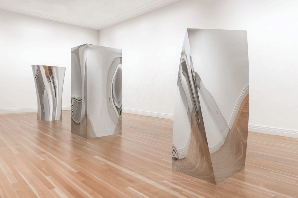 Le superfici lucidate creano riflessi sbiaditi e fluidi che interrompono, distorcendola, l’immagine equilibrata della realtà, impedendo ai visitatori di comprendere le forme antecedenti la torsione, che potevano essere di matrice simbolica, scientifica o spirituale. L’artista si è riferito anche in passato a lavori simili con il termine di “non oggetti”, quando geometria interna e superficie perfettamente riflettente sono la causa prima della loro stessa scomparsa.