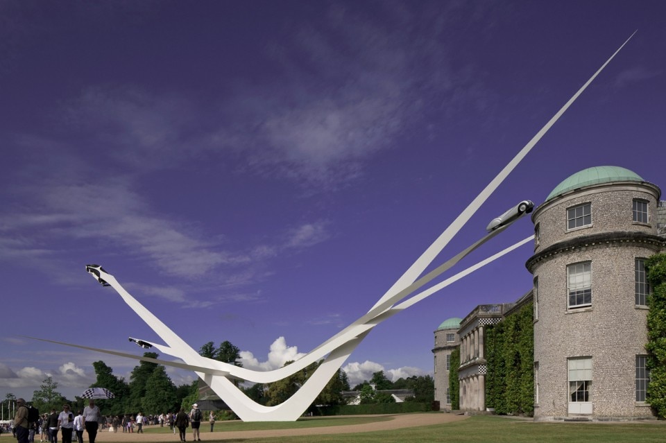 In occasione del Goodwood Festival of Speed a Chichester, Gerry Judah ha realizzato un’installazione per la BMW che sfida le leggi della fisica, con 100 metri di larghezza e 40 di altezza.