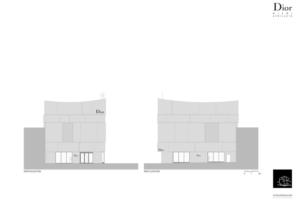 Progettata da BarbaritoBancel Architectes, la principale intenzione della Dior Miami Facade è quella di seguire l’identità e l’immagine di Dior: eleganza, raffinatezza, eccellenza, ricerca della perfezione, nobiltà, lusso, bellezza... alta moda e architettura possono incontrarsi intorno a questi valori.