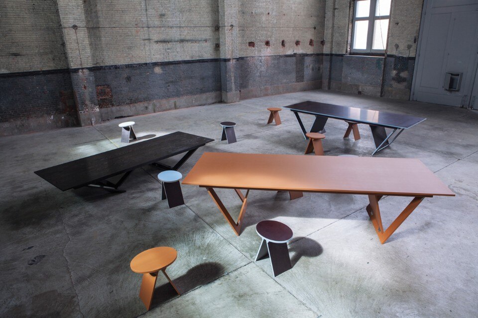 Robbrecht en Daem architecten, Tafel ‘TaTisch’ en krukje ‘Joburg Stool’, 2016. Foto Athos Burez
