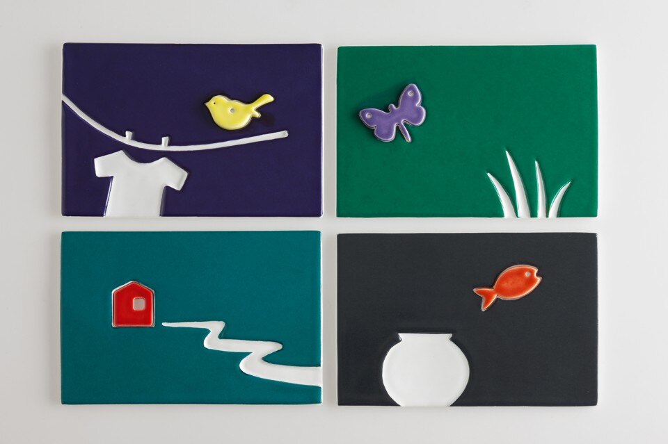 Le cartoline in ceramica disegnate da Alessandra Baldereschi e prodotte da Bosa contengono elementi “a sorpresa” che si possono staccare, regalare, o usare come ciondoli.