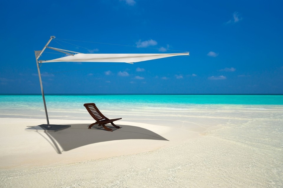 Kolibrie, il nuovo ombreggiatore a vela, che arricchisce la già vasta gamma di prodotti KE è pensato con un unico palo di sostegno realizzato in acciaio inox, ed è orientabile a 360° grazie al piedistallo a cuscinetti.