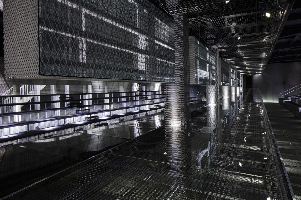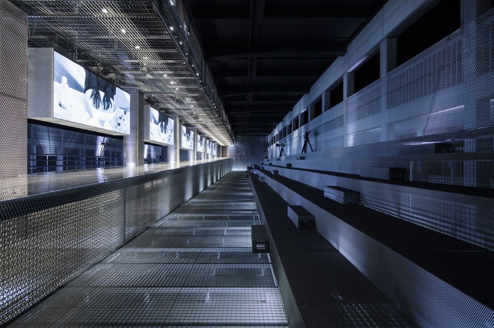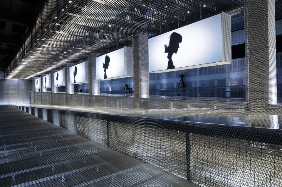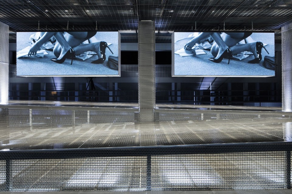 L’asse centrale dello spazio contiene un’installazione cinematografica su dodici schermi ideata dal regista David O. Russell e dallo studio newyorchese di design 2x4. Russell ha immaginato l’installazione come un surreale paesaggio onirico con un cast eclettico che reinterpreta le scene in combinazioni mutevoli. Sono frammenti tratti dal cortometraggio di prossima uscita Past Forward, una collaborazione tra il cineasta e Miuccia Prada. Acclamato dalla critica per il suo pluripremiato lavoro che ha riunito insiemi variegati di attori in film quali The Fighter, American Hustle – L’apparenza inganna, Il lato positivo, Russell ha concepito Past Forward come un complesso esperimento in forma cinematografica destinato alla visione in molteplici ambienti: installazione in gallerie, cinema, social media e online.