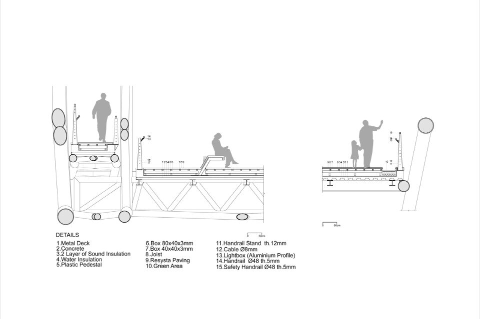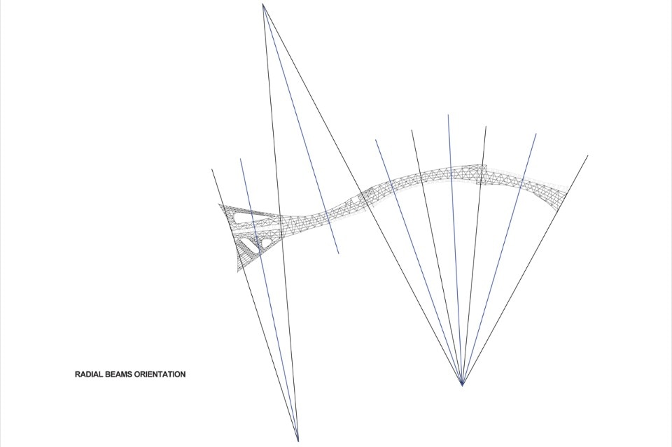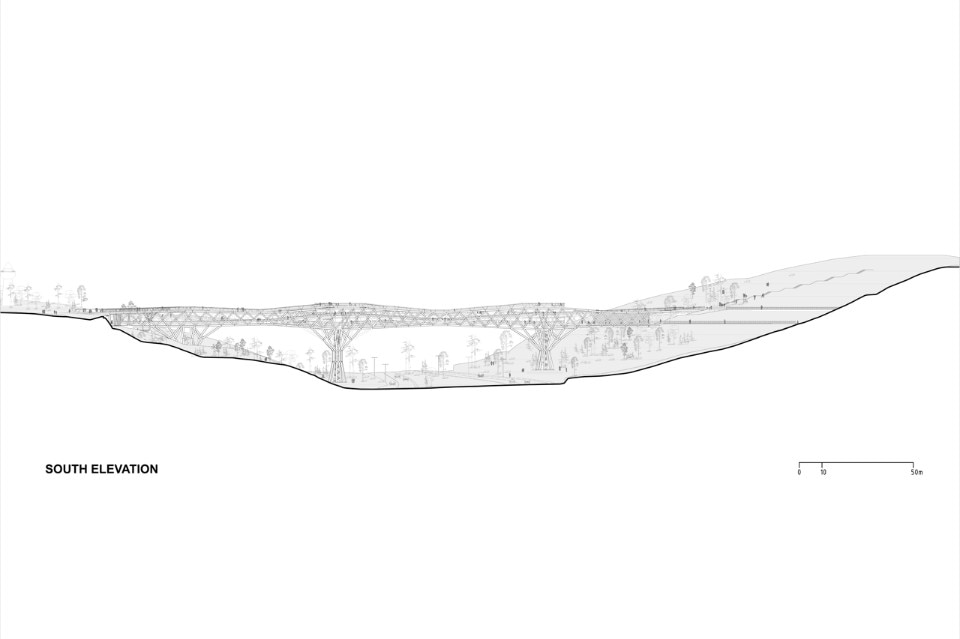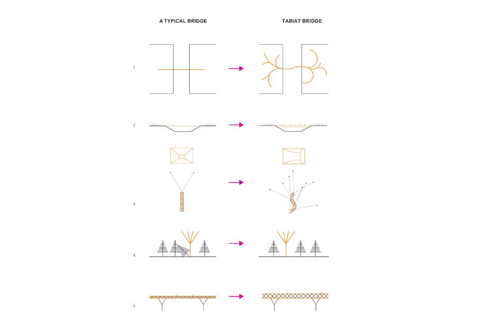 Diba Tensile Architecture, Tabiat Pedestrian Bridge, sezione in corrispondenza delle rampe
