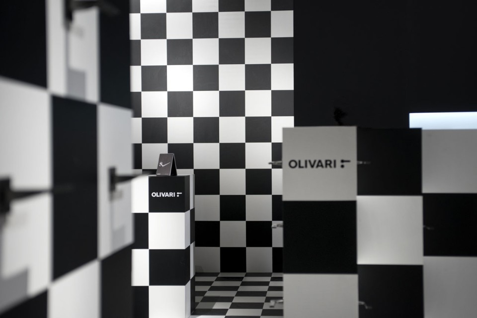 Paolo Brambilla: Accade spesso, per esempio ogni qualvolta dobbiamo gestire un colore aziendale che predomina fortemente, come l’arancione tipico di Flos. La capacità del progettista sta nel non subire il colore dato ma nell’integrarlo nello spazio fino a farlo diventare un tema portante dell’ambiente. Un altro caso è Olivari, storica azienda di maniglie: tutte le volte che ci richiede di studiare un allestimento per la presentazione di una nuova finitura o di un nuovo prodotto.