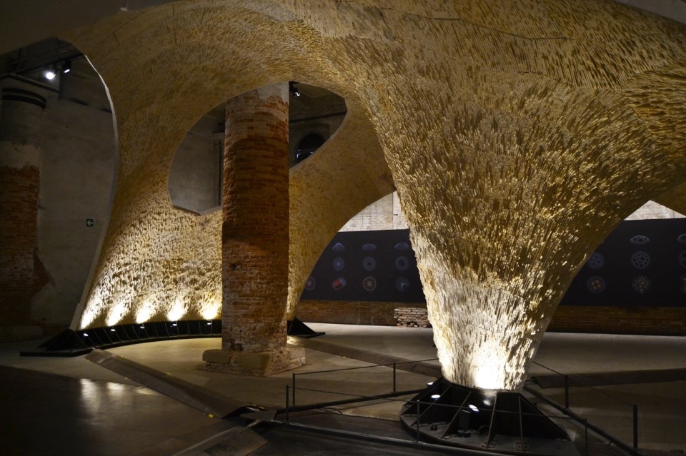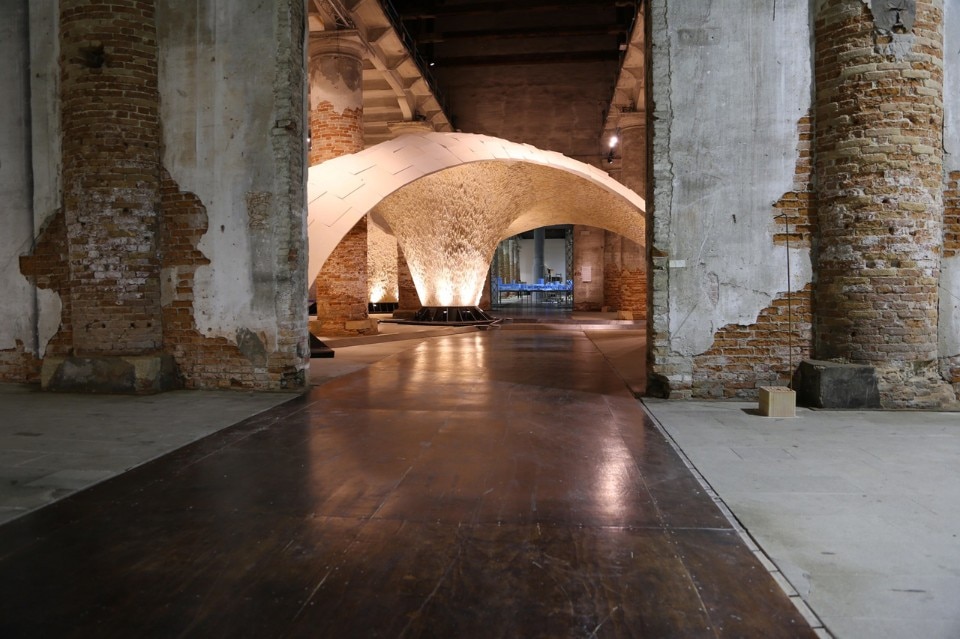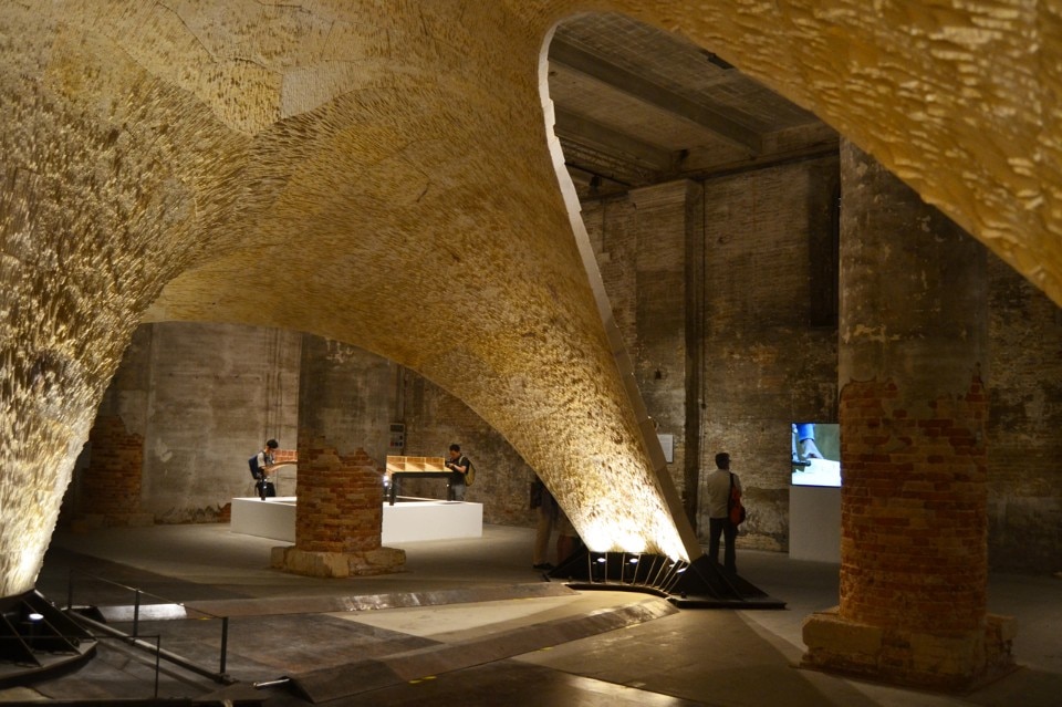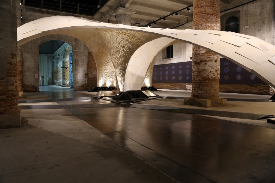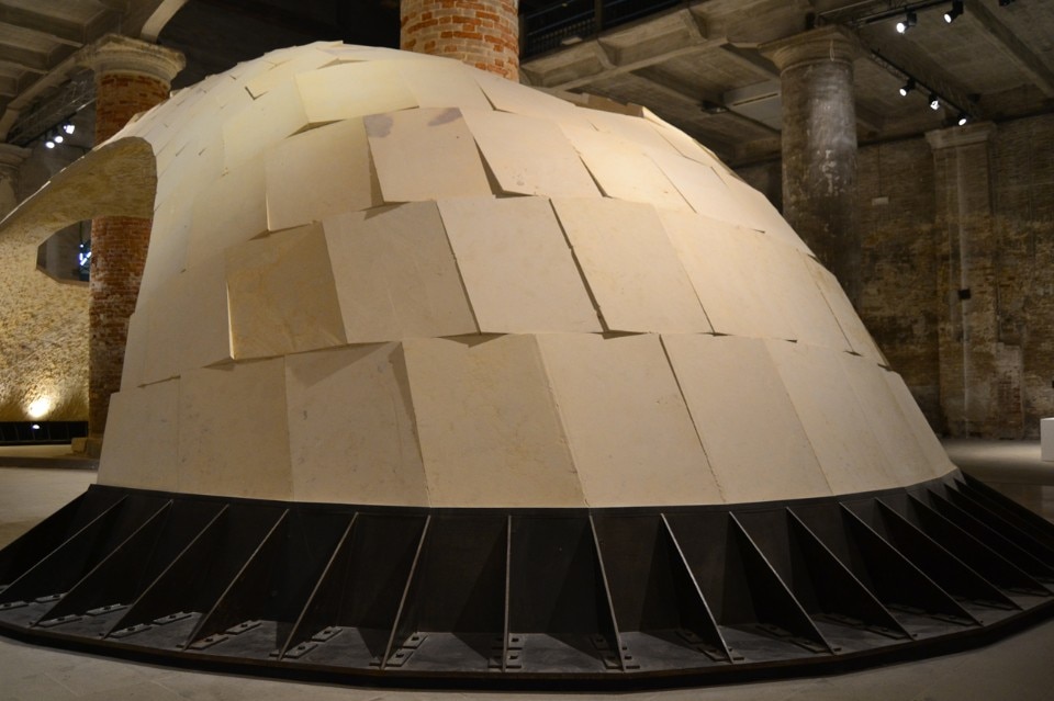 L’installazione della volta espansiva Armadillo Vault ideata dal gruppo Block Research Group dell’ETH di Zurigo in mostra all’Arsenale all’interno della mostra “Beyond Bending”, offre una riflessione sulle soluzioni tecnologiche e sulla ricerca di forme espressive innovative re-interpretando i principi delle strutture storiche, come la cappella del King’s College o le volte di Guastavino.
