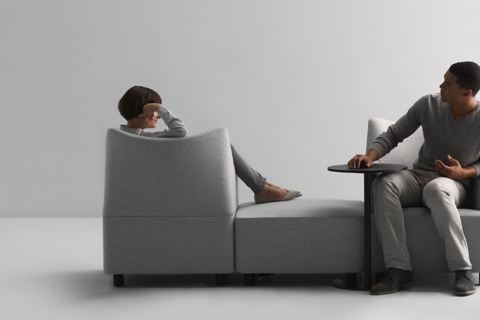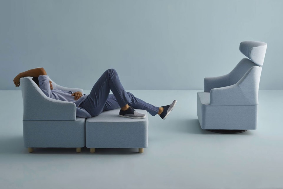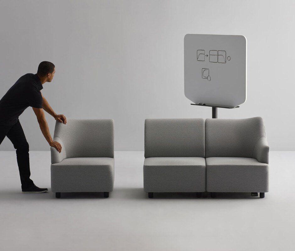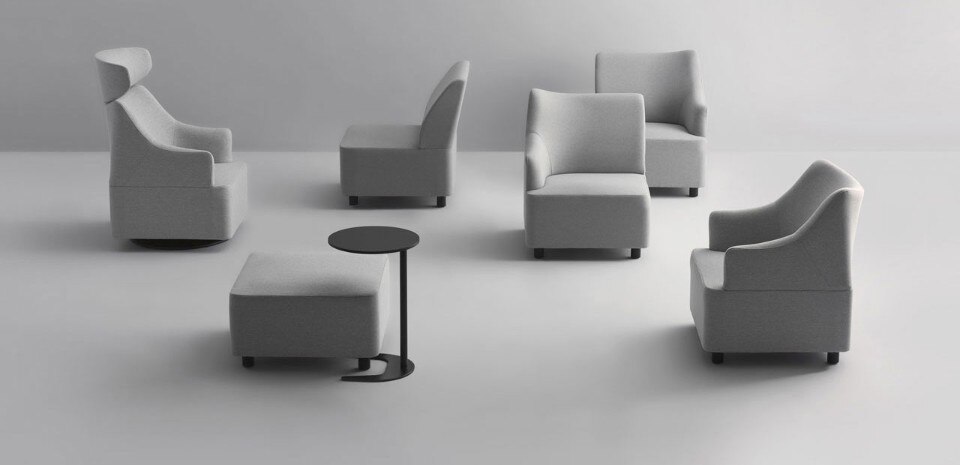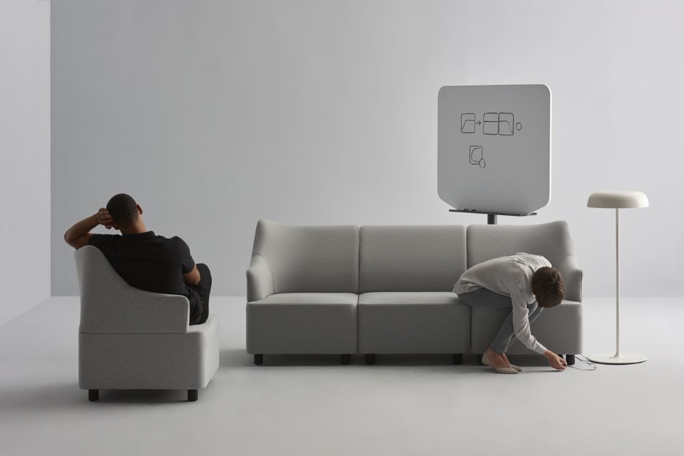 Plex si compone di soli sei elementi che possono essere combinati per creare un po’ di tutto: poltrone, divani, pouf, panche e chaise longue. Tavolini regolabili in altezza, accostati ai sedili rendono comodo il lavoro con un computer portatile. Porte di alimentazione alla base delle unità Plex forniscono un facile accesso per la ricarica. Ogni elemento può essere usato da solo o in combinazione, in una miriade di modi per creare le impostazioni che vanno da un rifugio per la contemplazione silenziosa; a sedute per un piccolo gruppo; o a configurazioni più ampie per gruppi più numerosi.