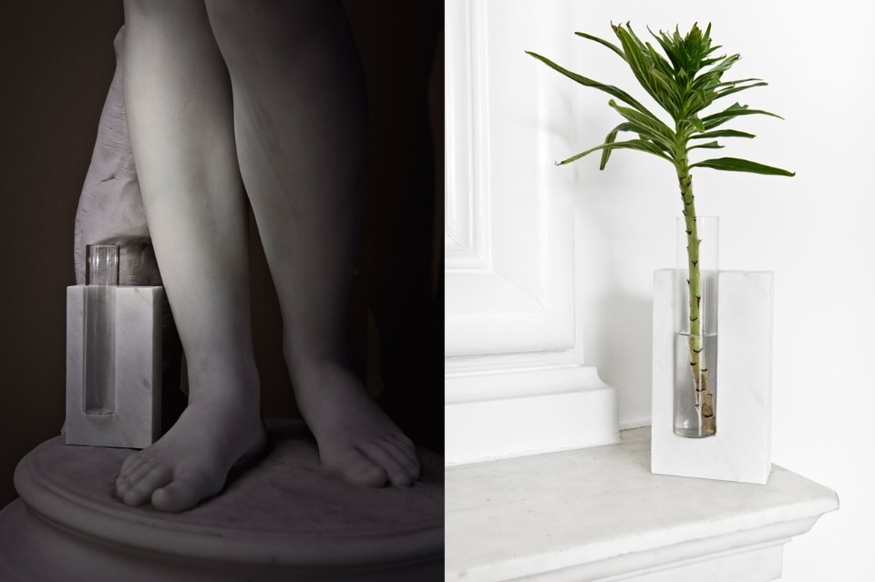 Utilizzando pietre scolpite e grezze, la designer svedese Sanna Völker ha creato la serie Snug per l’azienda danese Bolia: un porta candele e un vaso artigianali che sembrano intrappollare gli oggetti a mezz’aria.