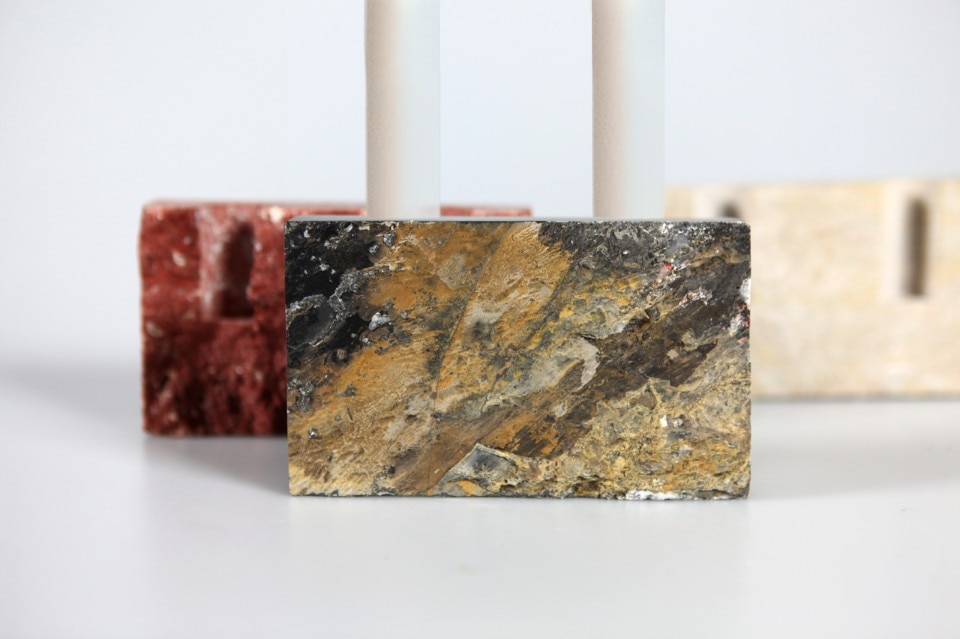 In base a come lo si guarda, il porta candele può apparire rustico e decorato, o lineare e pulito. Le candele sembrano essere saldamente intrappolate nella materia. I prototipi sono stati realizzati dallo scalpellino Graniti Barbany, artigiano e scultore nel cantiere della Sagrada Familia a Barcellona. Il vaso Snug prosegue lo stesso concetto formale, ed è costituito da una pietra rettangolare che ‘cattura’ un tubo di vetro che può contenere piccoli fiori o foglie singole.