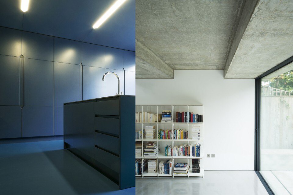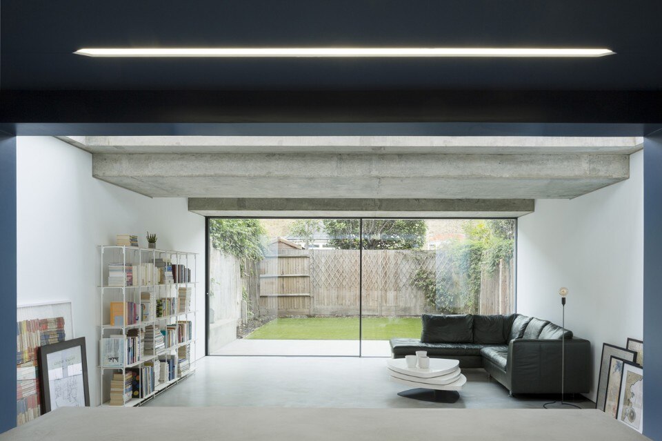Una volta cresciuto, il giardino sul tetto potrà ammorbidire il volume, sabilendo una connessione con la vegetazione circostante e migliorando la vista dai piani superiori. Se guardata dal giardino, la soletta in cemento appare lineare e in contrasto con la texture delle mura originali.