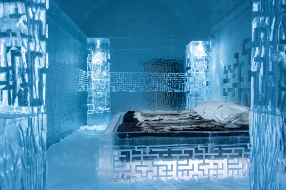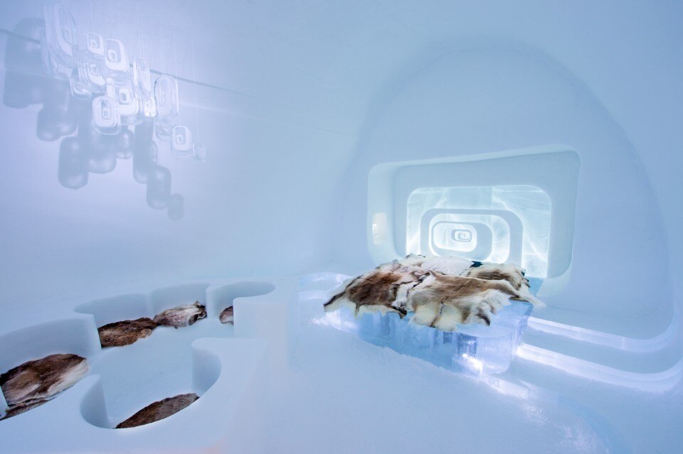 Quaranta artisti da tutto il mondo hanno realizzato gli interni dell’albergo Icehotel 365 in Svezia, le cui scultoree stanze sono composte interamente da ghiaccio e neve.