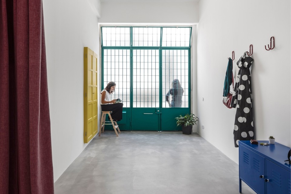 L’intervento si è basato su una resa molto chiara della struttura esistente, sottolineandone la forza. Il garage originale si presentava sporco e semi-abbandonato, mentre la nuova casa è pulita e bianca, con luce zenitale. Due ampi bagni sono stati inclusi dietro una parete curva, dove un tempo si trovava un angolo cieco. Le pareti e i soffitti sono stati dipinti di bianco, mentre il pavimento rivestito di cemento lucidato. I lucernari esistenti sono stati ridisegnati con un approccio minimalista.