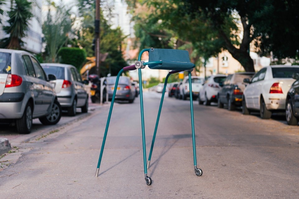 La giovane designer israeliana Reut Meiri ha realizzato un elegante e pratico deambulatore per anziani di alluminio e gomma con una borsa di tessuto facilmente removibile.