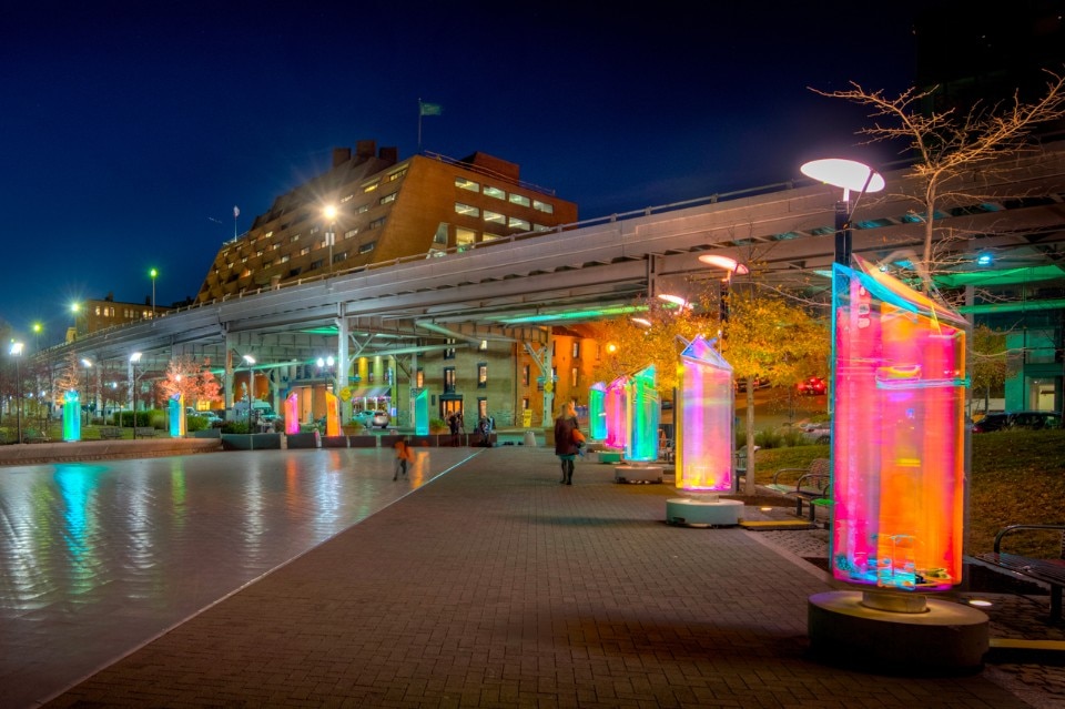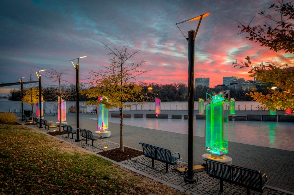 A Georgetown e Ottawa lo studio Raw ha realizzato Prismatica, un’installazione interattiva composta da 25 prismi rotanti alti più di due metri che riflettono i colori dell’arcobaleno.