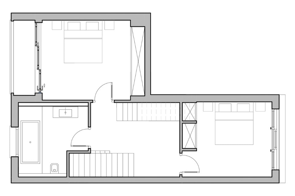 La terrazza dell’abitazione ha una duplice funzione. Permette l’ingresso della luce naturale nel cuore della casa con una grande finestra in corrispondenza della scala e consente ai residenti di godersi il clima mite e il paesaggio della città tunisina.