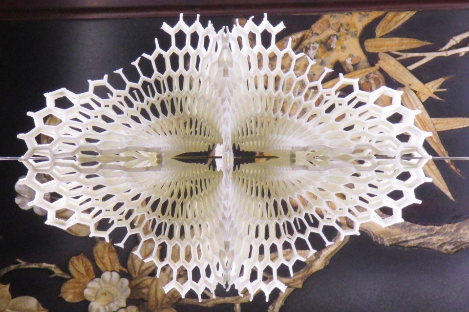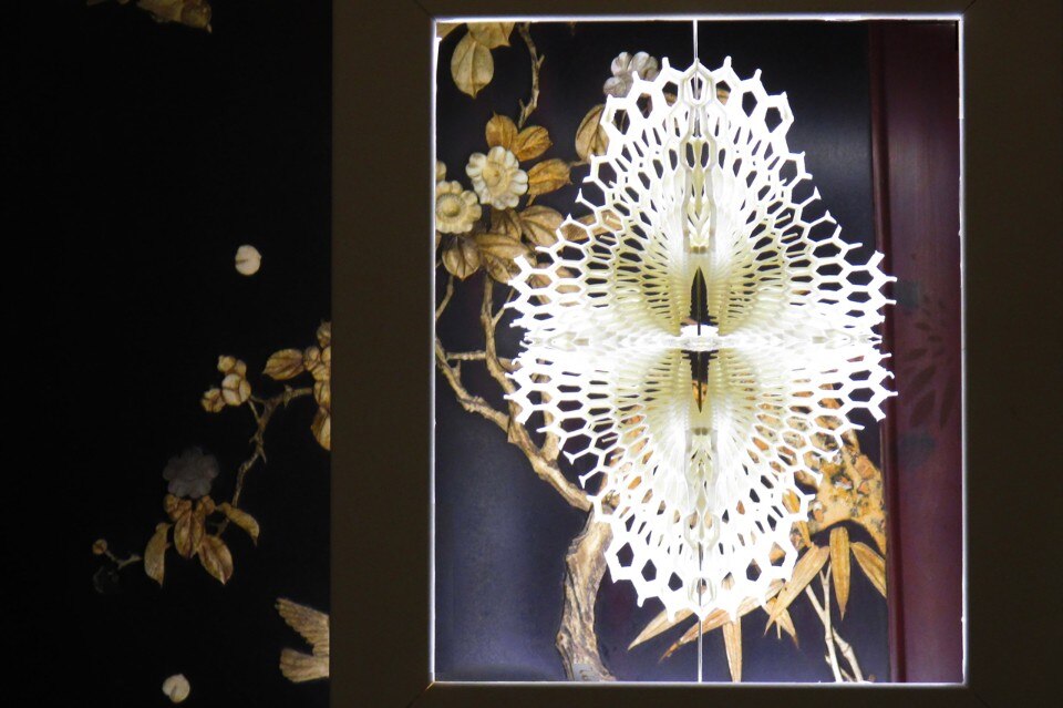 La geometria della luce è di estrema complessità. La sua configurazione è simile a quella dei frattali, non è considerabile né un piano né una forma completa. Le geometrie frattali sono uguali a scale diverse, adattandosi al contesto in cui si trovano, in questo caso alla confezione della luce. I modelli hanno forme, intrecci e geometrie simili ai tessuti di pizzo.