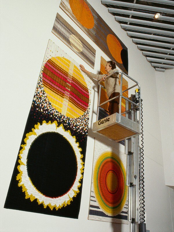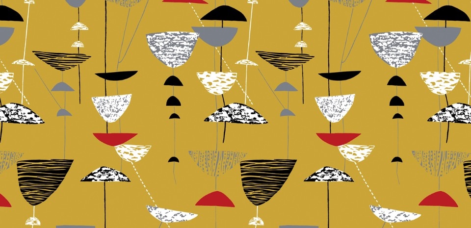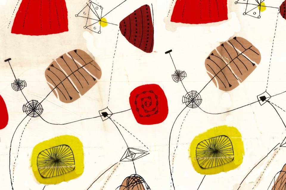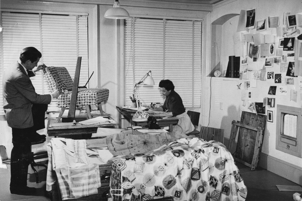 A sinistra: Lucienne Day, Jack Sprat tea towel, Thomas Somerset, 1959. Courtesy The Robin & Lucienne Day Foundation. Collezione di Jill A. Wiltse e H.Kirk Brown III, Denver. A destra: Lucienne Day, Black Leaf tea towel, Thomas Somerset, 1959. Courtesy The Robin & Lucienne Day Foundation. Collezione di Jill A. Wiltse e H. Kirk Brown III, Denver