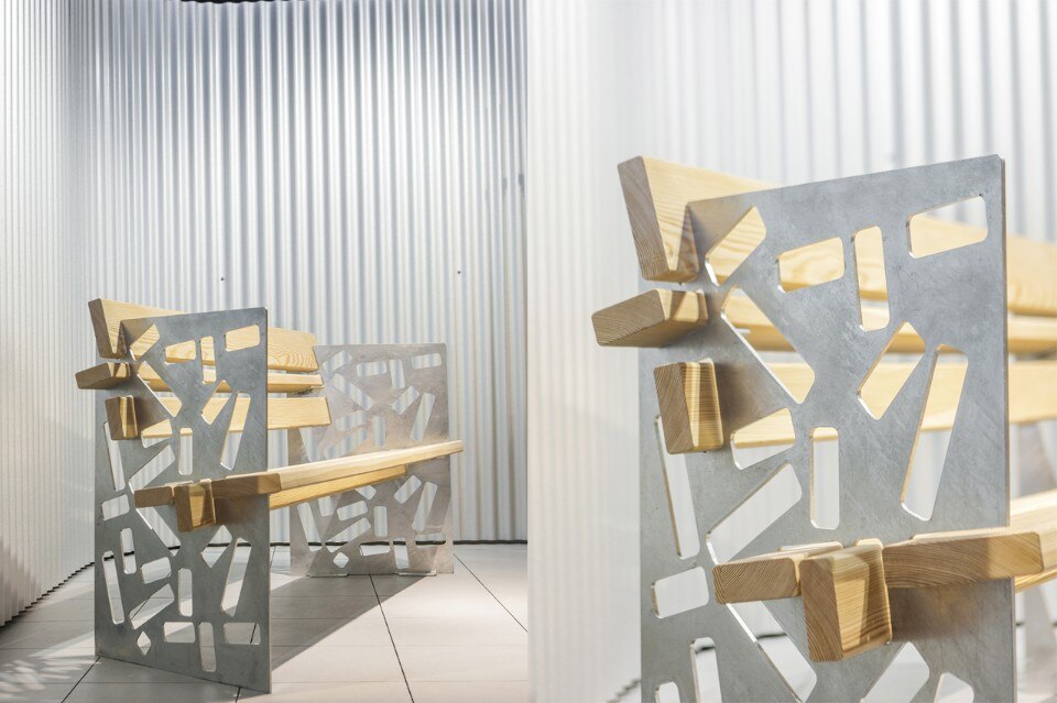 Marielle Andersson, panca Zinc. “Urban Stories”, Konstfact University a Greenhouse, Stockholm Furniture & Light Fair 2017