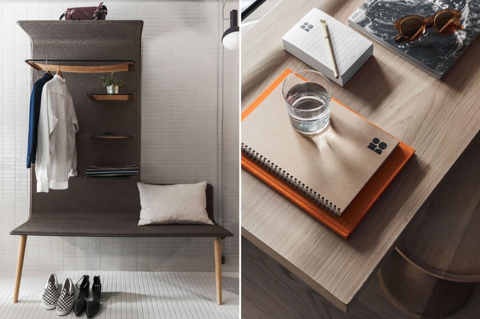 Tutti i pezzi di design sono stati selezionati accuratamente e progettati dallo Studio Aisslinger in collaborazione con alcuni brand europei di alto livello. Tra questi, il marchio svedese Wästberg per le luci, le sedute e i divani Cappellini, rubinetto Axor di Hansgrohe disegnato da Aisslinger, il primo in argilla.