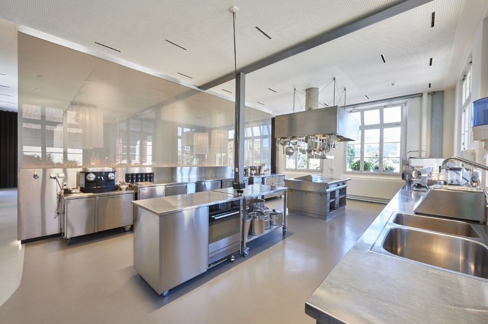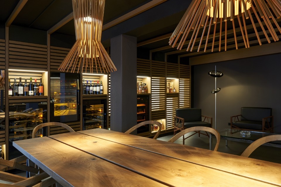 I lavori di ristrutturazione sono stati affidati ad Atelier Oï che ha integrato mobili USM realizzati appositamente per il ristorante con legno di cedro giapponese e lampadari su misura. Al piano seminterrato si trova la lounge fumatori per le degustazioni di vino, di whisky e sigari cubani, dominicani e honduregni. Il primo piano ospita due sale meeting accanto al ristorante e alla cucina dove è possibile farsi preparare i propri piatti preferiti o cimentarsi personalmente ai fornelli. Al piano superiore, infine, si trova l’aula per seminari, che può ospitare 52 persone.