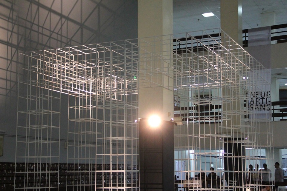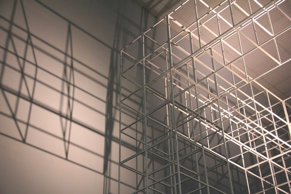 Tra le loro realizzazioni passate i progettisti hanno rintracciato un fascino comune per griglie e reti, utilizzate come elemento generatore e strutturante del progetto. Entrambi condividono la convinzione che la neutralità della griglia permette di eliminare la necessità di imporre eventuali preferenze estetiche nella progettazione dell’architettura. Il progetto ha assunto quindi la forma di una struttura che fa da cornice ad una porzione dello spazio espositivo, rispondendo alla già presente griglia della disposizione interna.