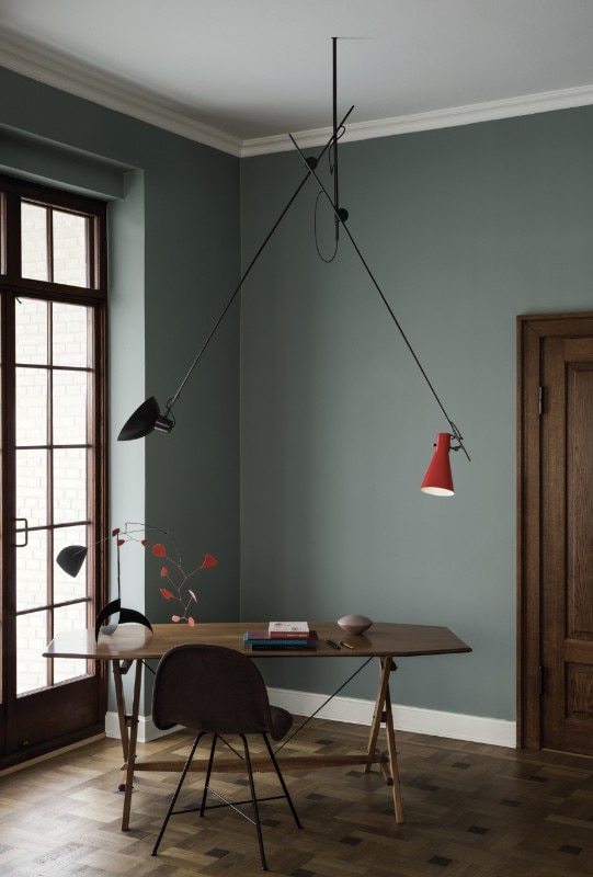 La versione a sospensione è caratterizzata da una struttura a due bracci. Alle loro estremità sono montati due riflettori con forme diverse per sottolineare le diverse funzioni. Sia la struttura sia i riflettori possono essere regolati in svariate posizioni ottenendo diversi scenari luminosi e assumendo anche una dimensione grafica di particolare impatto.