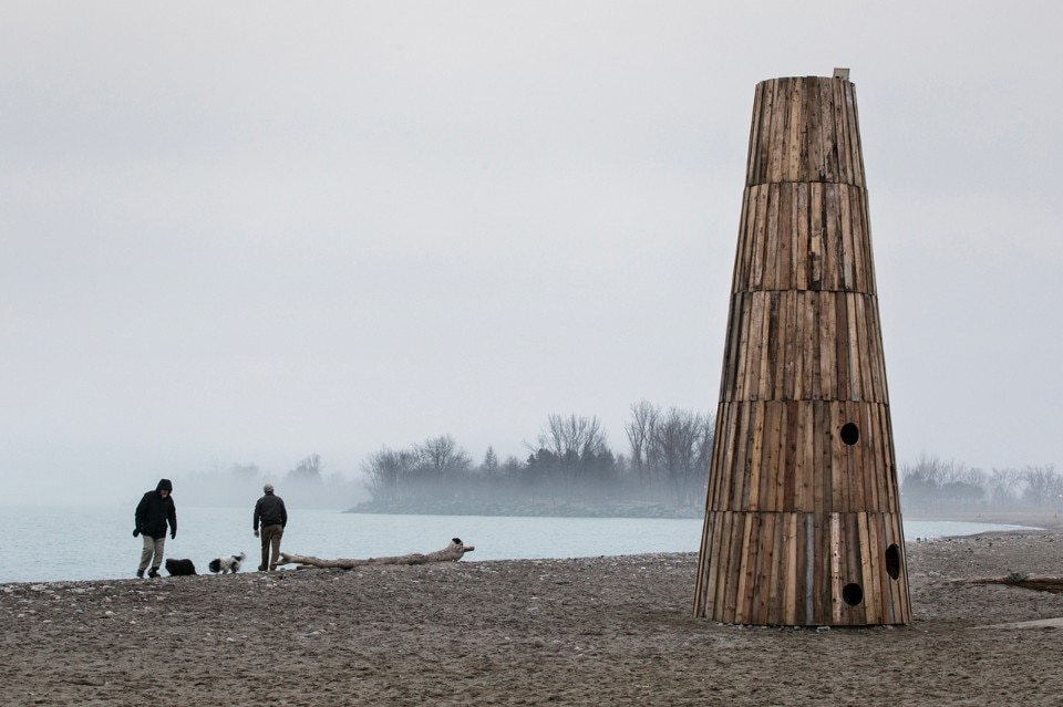 Realizzato in collaborazione con gruppi locali di volontariato, The Beacon è una stazione di raccolta per gli oggetti non deperibili come i vestiti o il cibo in scatola. La parte inferiore agisce come deposito per questi articoli, con aperture posizionate strategicamente ad altezze differenti. The Beacon rappresenta un’opportunità per creare una rete permanente di hotspot per la donazione a Toronto, ed è un landmark da posizionare nei parchi urbani e nelle aree naturali.