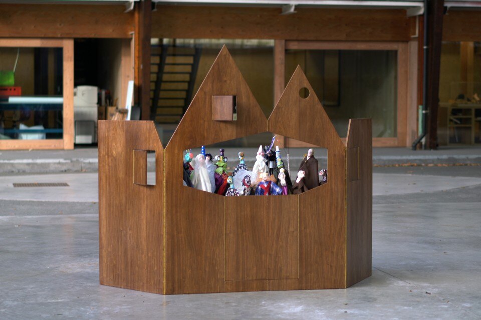 Il fascino che Robbrecht ha da sempre per lo spettacolo di marionette si è tradotto in un teatrino che unisce elementi di architettura contemporanea e castelli fiabeschi. Simile al celebre mercato coperto di Gand, ci sono due tetti a spiovente che rileggono il medioevo fiammingo. Inoltre, l’architetto si è basato su sistemi di misurazione rigorosi, seguendo lo stesso identico procedimento usato nei progetti dello studio Robbrect en Daem.