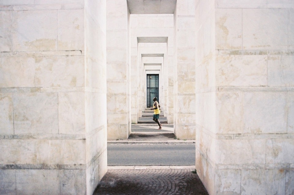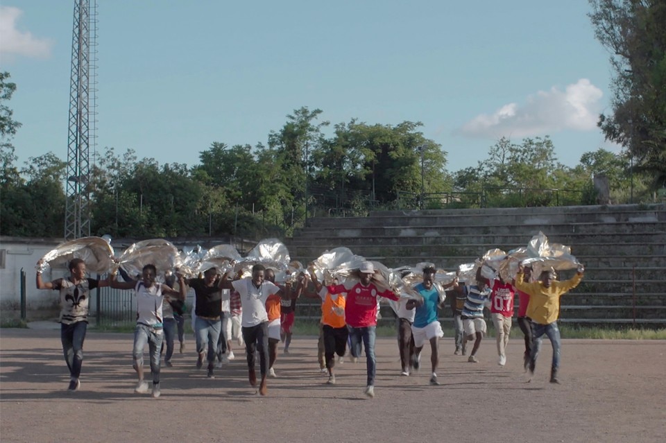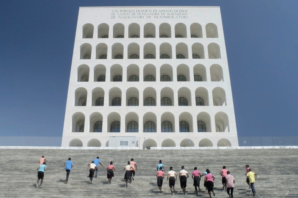 Freedom of Movement si compone di tre proiezioni simultanee. Sul primo schermo, un corridore africano ripercorre sulle strade di Roma alcuni dei momenti e degli scenari architettonici che caratterizzarono la storica maratona; nel secondo video, un coro di giovani rifugiati africani attraversa gli spazi del Colosseo Quadrato dell’EUR dalla scala monumentale fino al tetto per intonare una canzone che affronta questioni legate all’identità originaria dei migranti e a quella del paese che li ospita; sul terzo schermo le riprese della maratona del 1960, intervallate da materiale d’archivio sulla costruzione dell’EUR e del Foro Italico, si sovrappongono alle immagini attuali di una corsa notturna di immigrati.