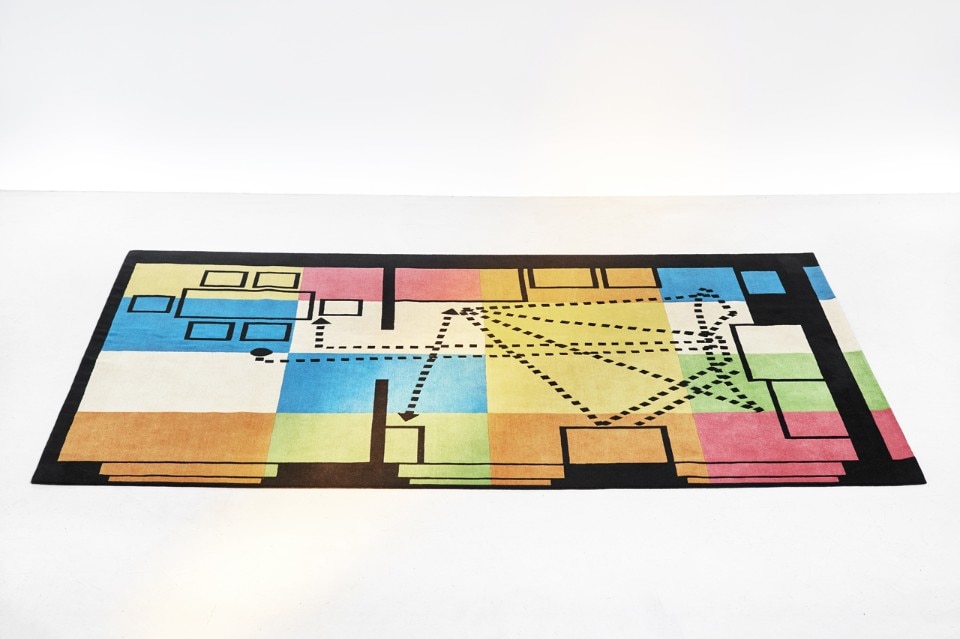 “The Interior and The Carpet” presenta la prima lista di artisti a cui vennero commissionati tappeti d’autore tra il 1985 e il 2003: Walter Dahn, Jiří Georg Dokoupil, Peter Nagy, Rob Scholte e Rosemarie Trockel, così come una serie di tappeti più recente (dal 2014) realizzati da Alan Belcher, Liam Gillick, Emilia e Ilya Kabakov, Joseph Kosuth, Ken Lum, Julião Sarmento, Heimo Zobernig.