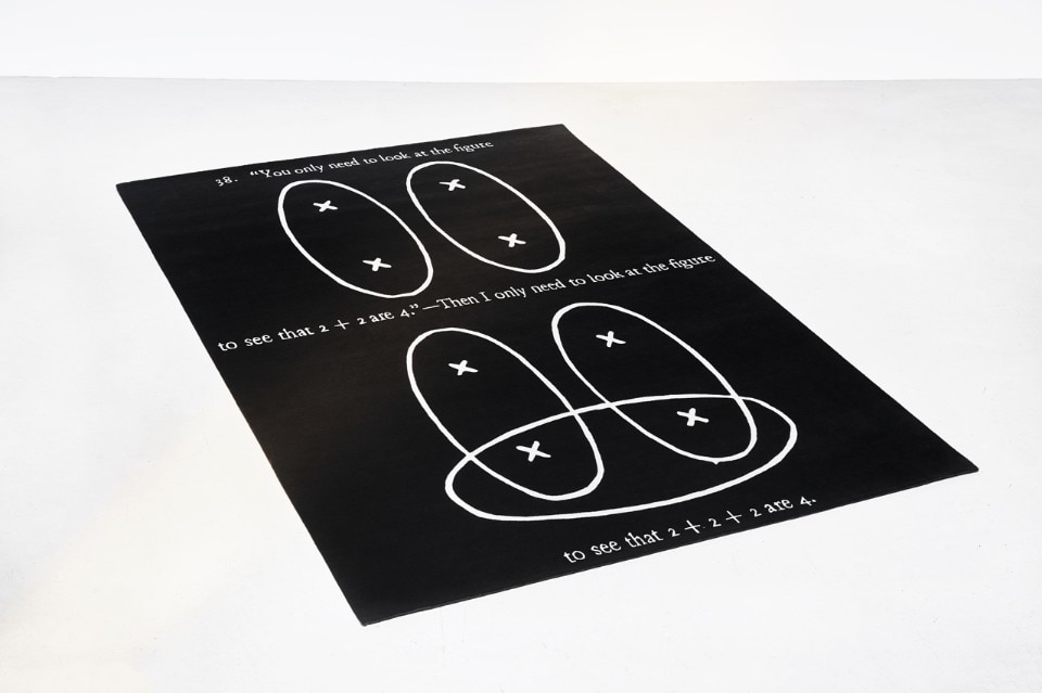 In apertura: Rosemarie Trockel, Plus Minus, 1.4m x 2.2m, 1991. Qui sopra: Joseph Kosuth, Remarks on the Foundation of Mathematics, 2m x 3m, 2015. Foto Michel Nafziger