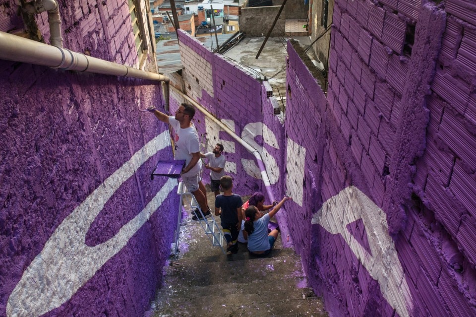 Il progetto è iniziato con i vicoli Becos e Vielas, ora arricchito con altre due opere. L’idea era di sintetizzare l’essenza di Brasilândia, semplificando la complessità spaziale con il colore e l’utilizzo di anamorfosi per generare una grande tela urbana. Le parole scelte ritraggono la vera vita quotidiana del quartiere attraverso un processo collaborativo e un intervento su pareti e pavimenti che danno origine a nuovi legami tra le persone.