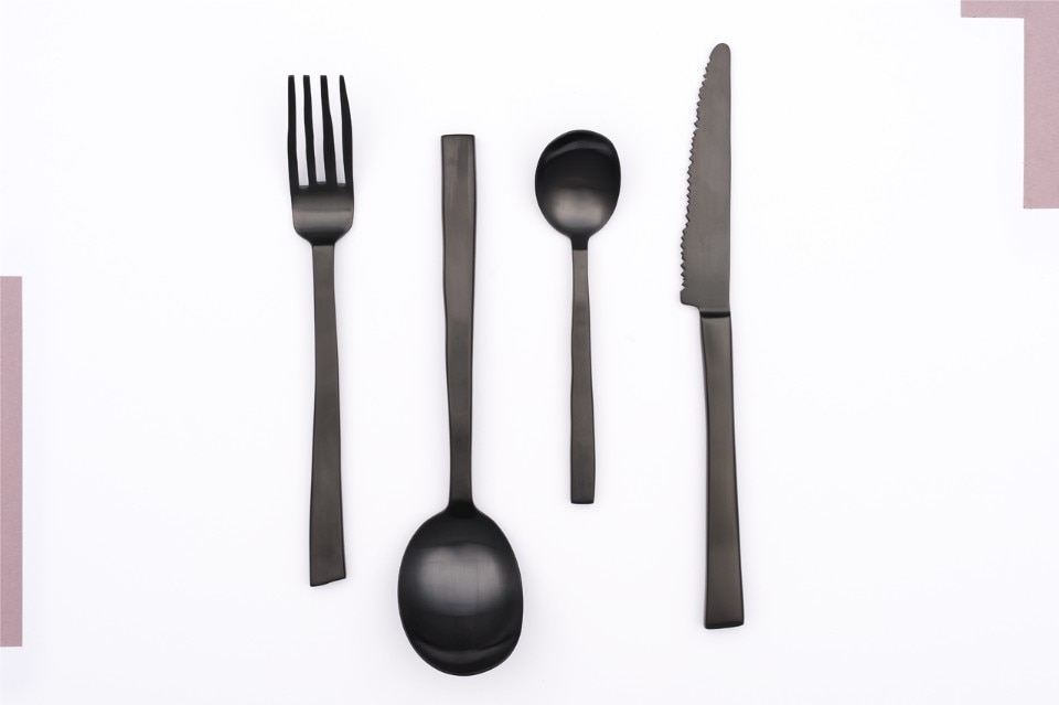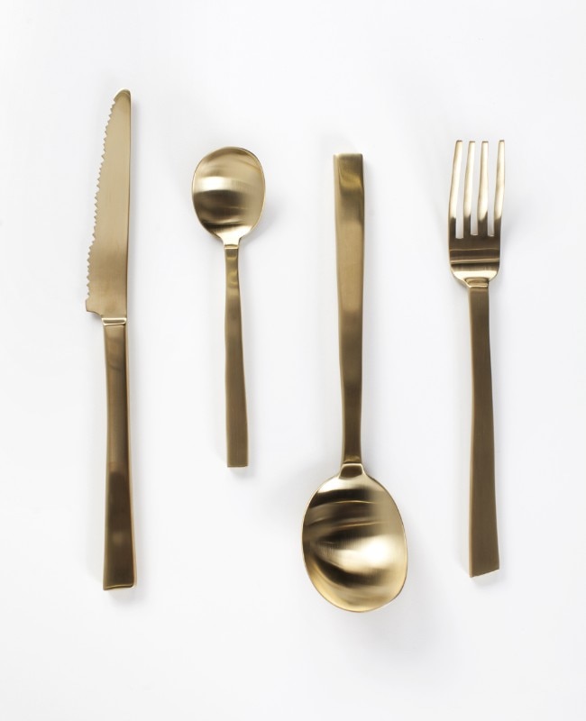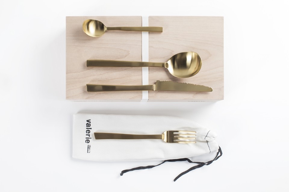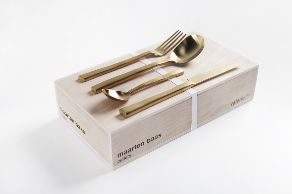 La collezione si amplierà gradualmente con un coltello e forchetta da dessert. Queste prime posate di Baas nascono con una forma bizzarra, con la lama del coltello seghettata. L’irregolarità è un suo marchio di fabbrica, presente in tutti i suoi lavori. Il set è di acciaio inossidabile spazzolato, disponibile nella finitura naturale, nera, ottone e rame.