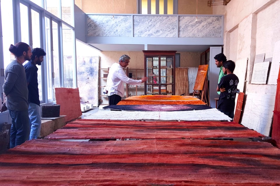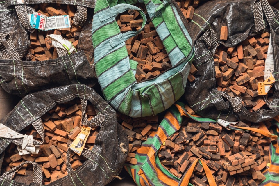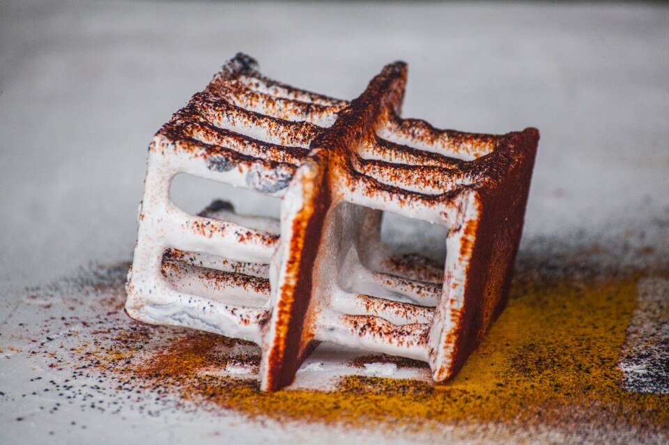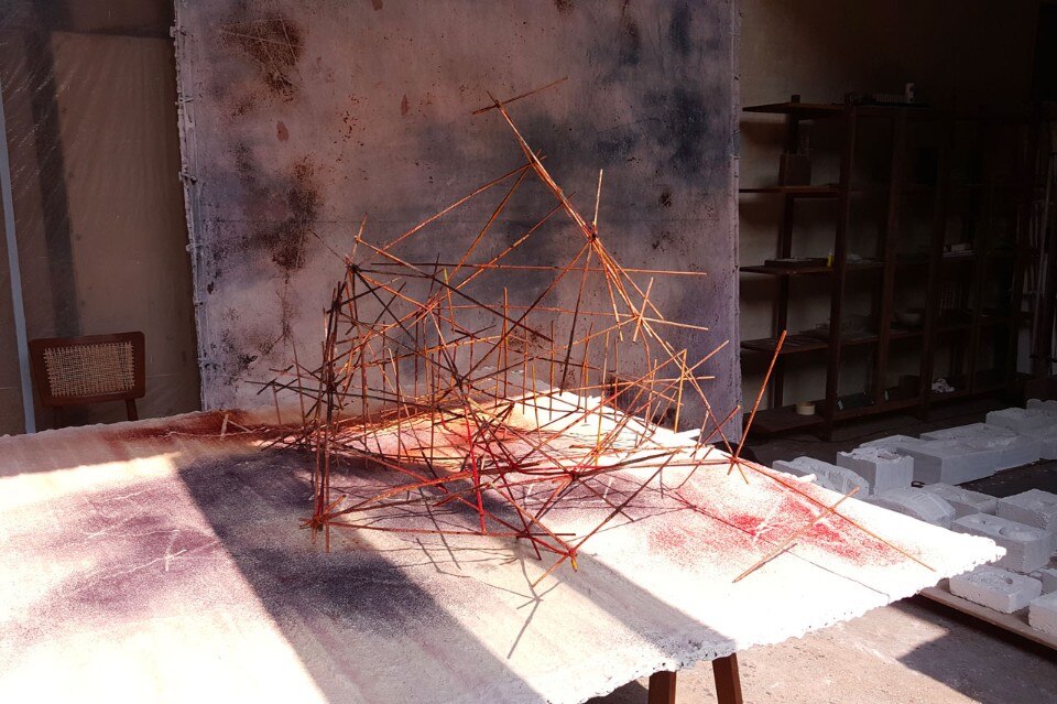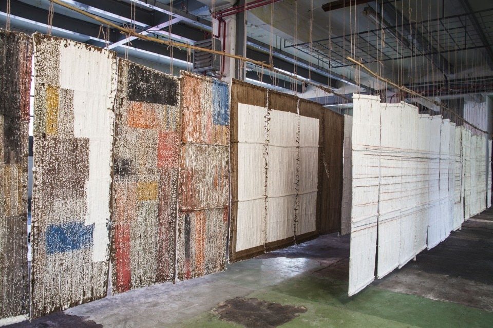 George Sowden, un designer – uno dei fondatori di Memphis – utilizza elementi della sua produzione industriale e li trasforma in un proprio vocabolario per comporre una serie di imponenti installazioni. Il designer ha detto: “Per la mostra The Heart Of The Matter ho costruito delle opere (che considero opere d’arte) attingendo qua e là a oggetti che ho disegnato, inclusi pattern realizzati per il tessile e decorazioni delle mie ceramiche. Utilizzandoli come materiale grezzo li ho riorganizzati, a volte cambiandone la dimensione e la scala, e riposizionandoli in maniera tale che non possano più essere riconoscibili come prodotti. Decontestualizzati sono solo forme e colori.”