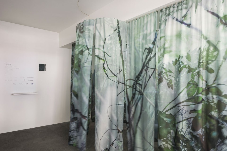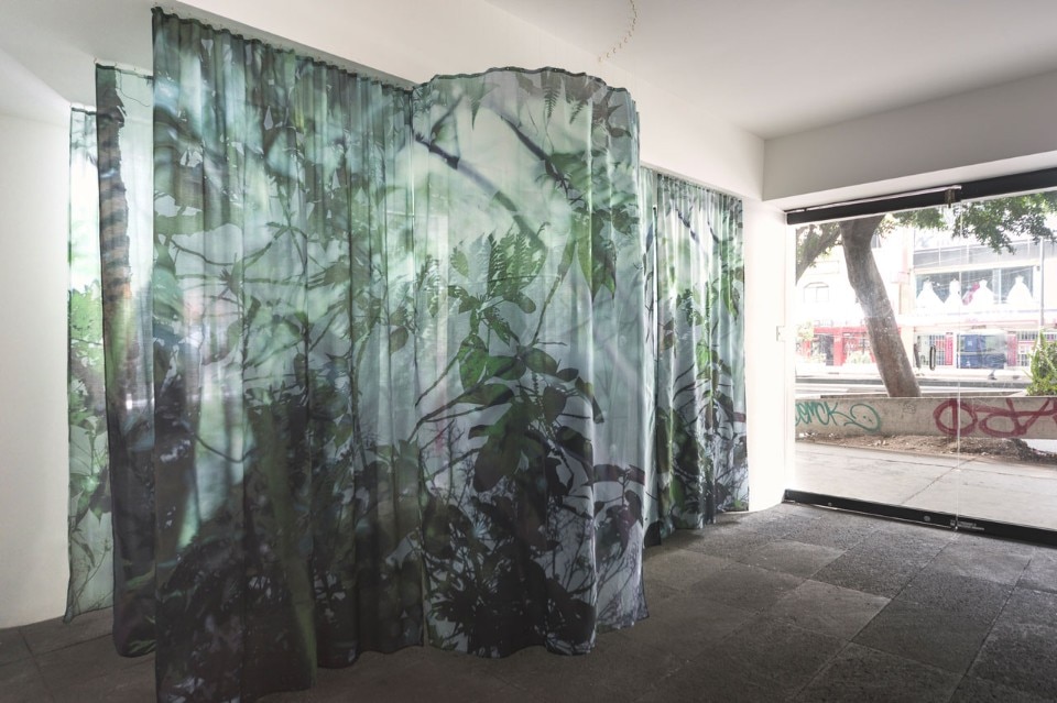 L’opera dell’architetto colombiano Camilo Restrepo, fondatore dello studio AGENdA, gioca inoltre con le regole della pittura romantica per ricreare, all’interno dello spazio espositivo, una sorta di ologramma del giardino del suo studio di Medellin. Tramite la sovraimposizione delle immagini di piante del suo paese natale, Restrepo non solo trasporta a Città del Messico i suoi temi e metodi progettuali, ma anche un vero e proprio angolo del suo spazio di lavoro.