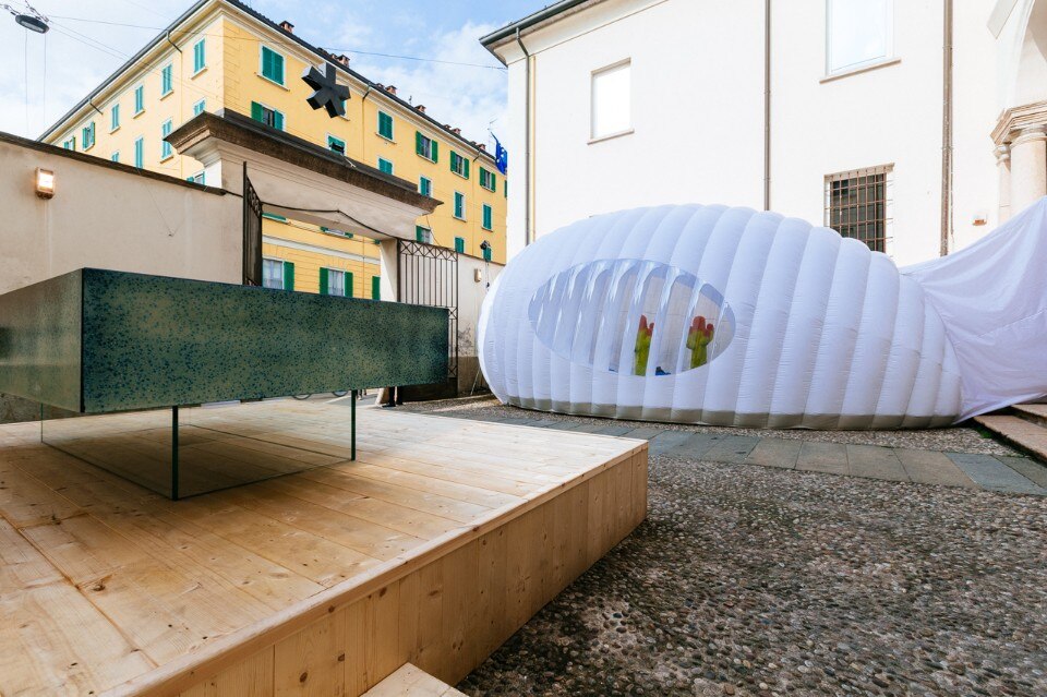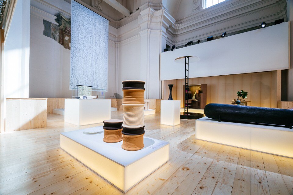 Sui due livelli dello storico edificio, si alternano – per citare alcuni dei lavori esposti – il lungo velo/confessionale disegnato dai Bouroullec + Lesage Intérieur, i sarcofagi “sostenibili” di Tom Dixon + Paper Factor, i dieci (nuovi) comandamenti di Yves Béhar + Paul Antonio Scribe, il piccolo sottile involucro tra sacro e profano di Francesco Librizzi + De Castelli, il tabernacolo di Giacomo Moor + Emmemobili. E, ancora, la scala infinita (grazie a un gioco di specchi) di Snohetta + Everything Elevated le fonti monolitiche di Tino Seubert + Pibamarmi.