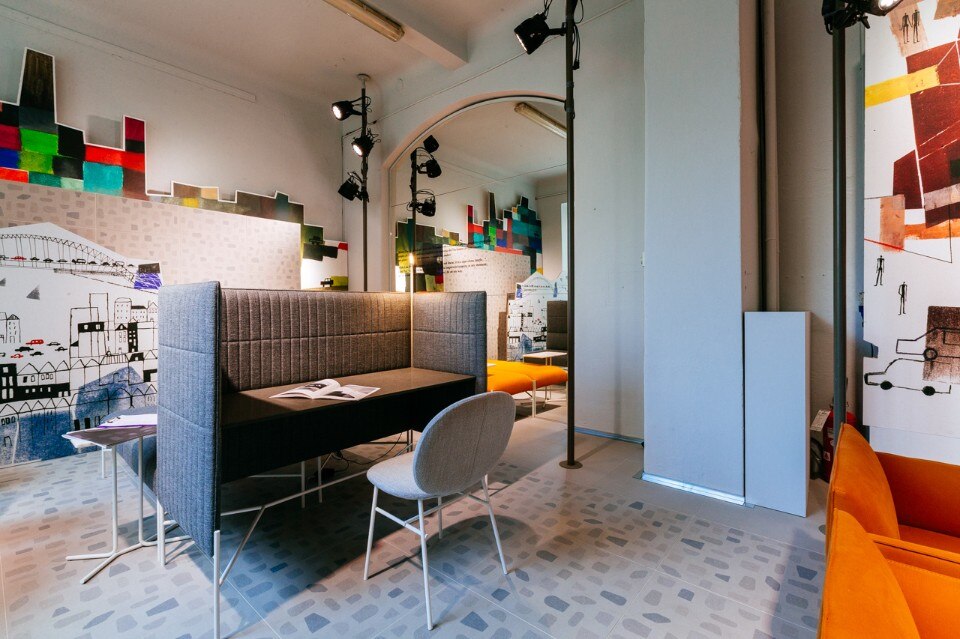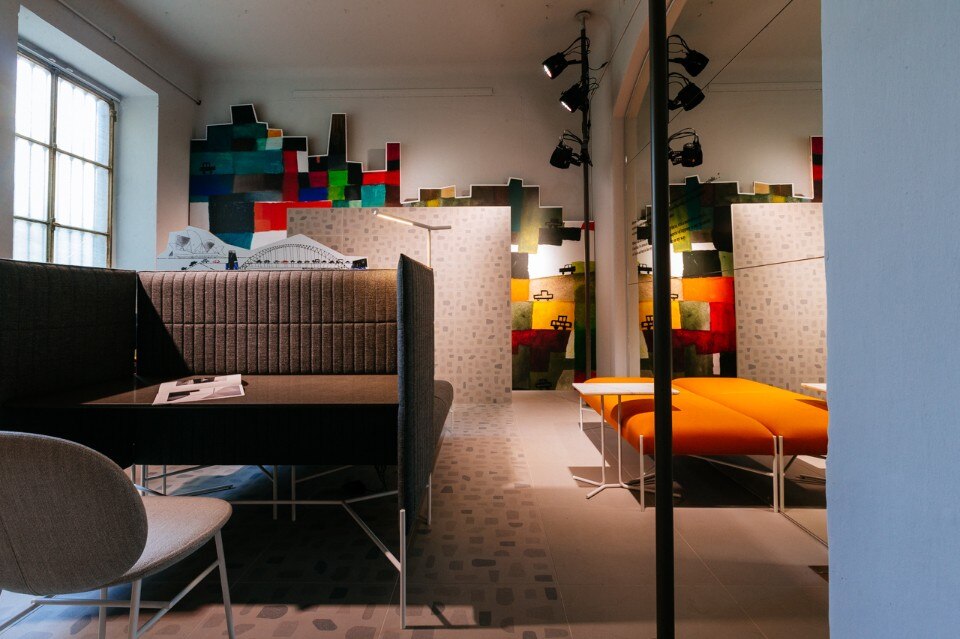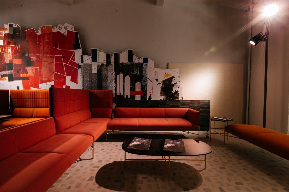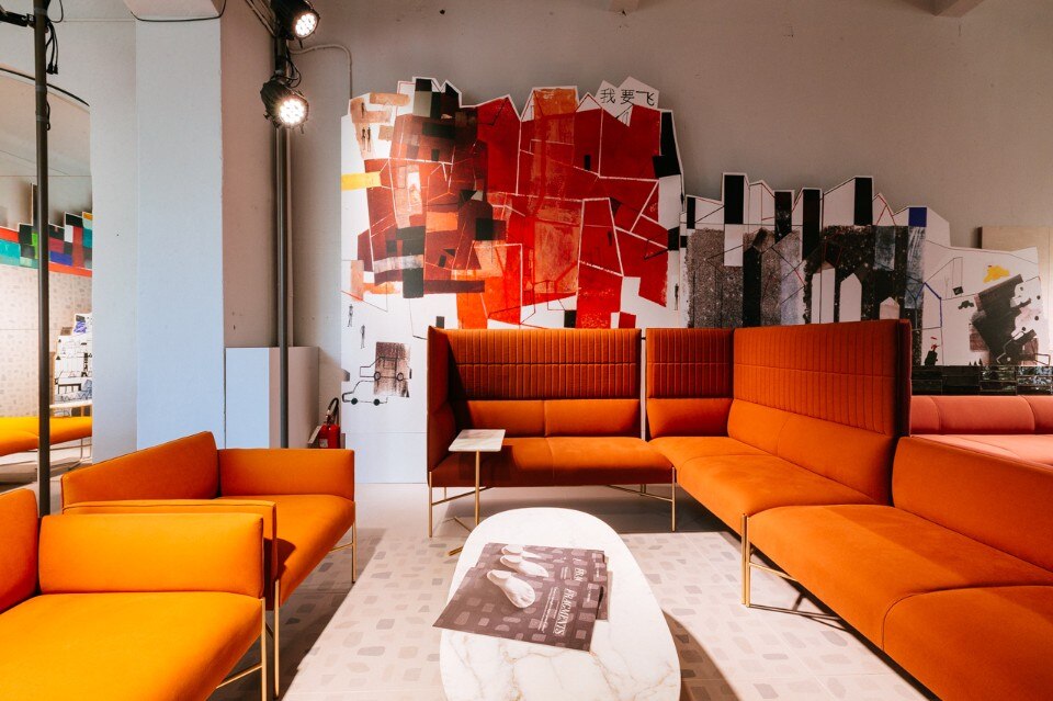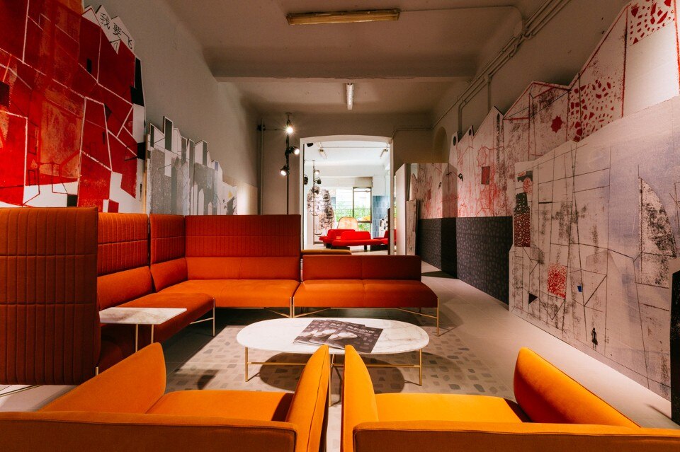 Le nuove collezioni Tacchini, nell'installazione con le illustrazioni di Javier Zabala e allestita da Gordon Guillaumier e Gabriella Zecca