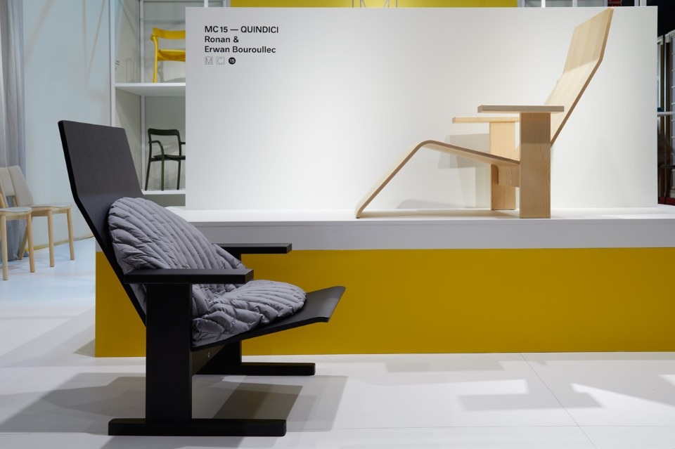 L’impianto della sedia è estremamente architettonico: tutto tende alla verticalità, in netto contrasto con l’orientamento e la curvatura dello schienale che s’innesta alla struttura tagliando la sezione quadrata del prolungamento delle gambe. Un passaggio sfidante è stato disegnare un tavolo per la sedia in cui l’innesto delle gambe fosse celato al di sotto del piano tavolo.