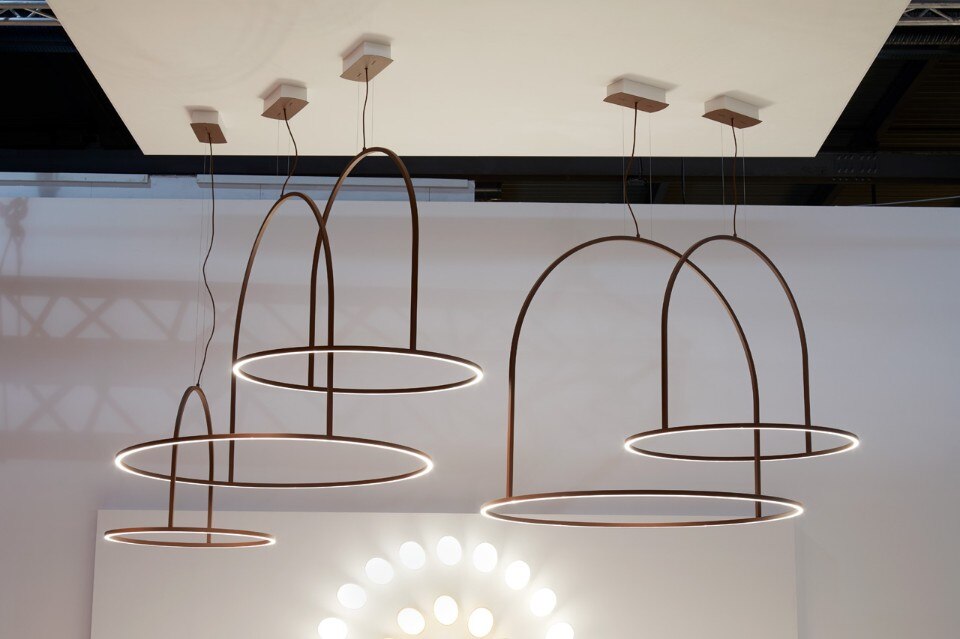 L’incursione tecnologica nel mondo dell’illuminazione decorativa viene utilizzata per fare cose nuove. Grazie alle dimensioni ridotte dei LED infatti, da un lato, molti apparecchi d’illuminazione hanno diminuito il loro ingombro dando vita a oggetti luminosi di spessore minimo, dall’altro invece si attesta una nuova tendenza che rivede le tecniche del passato con gli occhi di oggi recuperando materiali in uso nei decenni passati – dalla preziosità dei metalli dal sapore vintage alla presenza scenica degli spessi vetri curvati degli anni Cinquanta – che acquisiscono nuova vita ed effetti inediti grazie alla tecnologia recente.