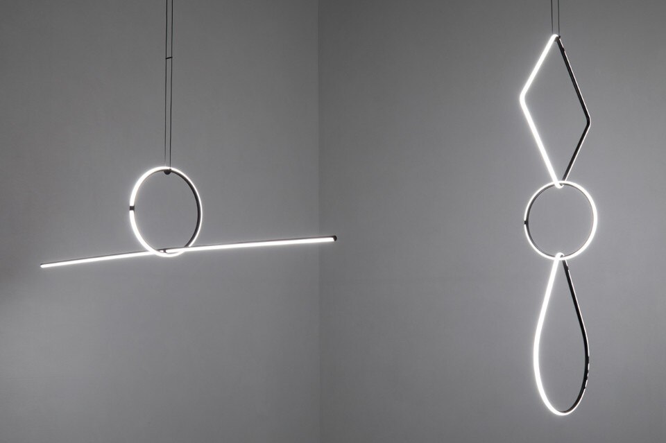 U-Light di Timo Ripatti per Axolight abbina a una linea a forma di U rovesciata e un anello sottostante, nel quale si colloca la fonte luminosa LED