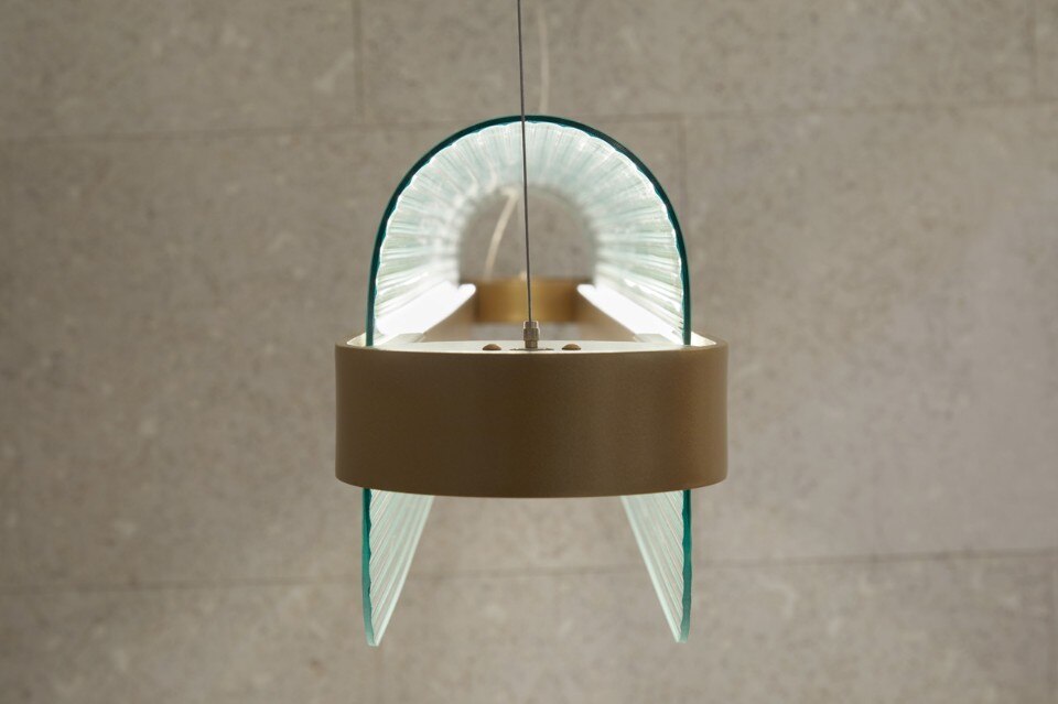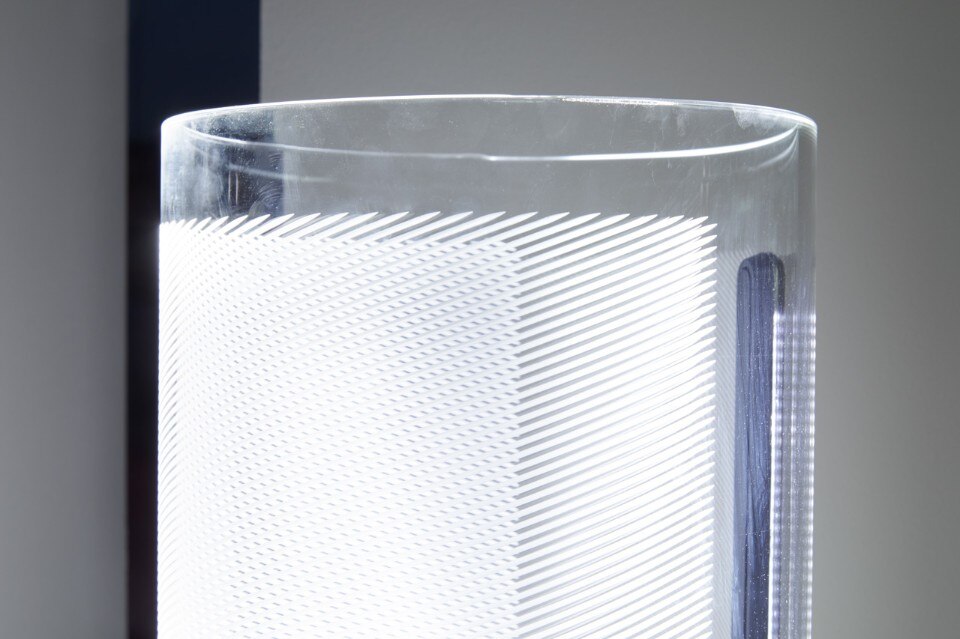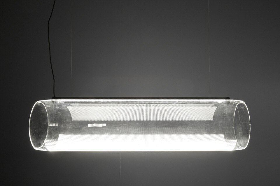 Guise di Stefan Diez per Vibia in cui la sorgente luminosa è integrata nel vetro ed emanata all'esterno grazie ai tagli lungo la superficie