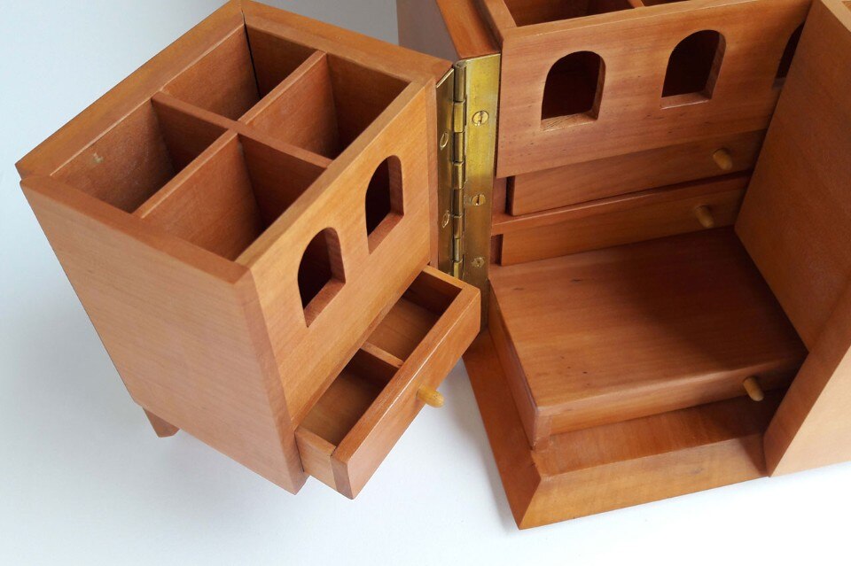Figura chiave del Made in Italy, Ghianda ha saputo coniugare la tradizione dell’artigianato artistico italiano con l’innovazione del disegno industriale che, proprio negli anni ’60, si stava sviluppando, collaborando nel corso del tempo con i grandi nomi del design italiano. Non solo massimo esperto del legno, ma amante del lavoro artigiano e della cultura legata ad esso, ha creduto fortemente nell’importanza della formazione nel campo dell’artigianato di eccellenza. In mostra una serie di piccoli oggetti della Bottega Ghianda, preziosissime scatole dalle forme variegate, caratterizzate da intrecci di essenze e pensate per custodire memorie e oggetti preziosi.