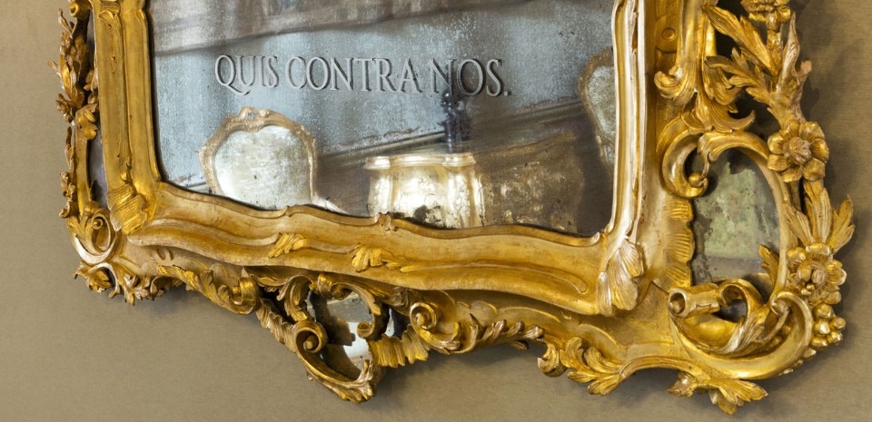 L’opera Quis contra nos. prende avvio dallo stemma della famiglia Rezzonico, presente in diversi ambienti del palazzo e che riporta la scritta in lettere dorate Si Deus pro nobis. La frase è tratta da San Paolo (Lettera ai Romani, 8, 31) e nella sua forma originale recita: SiDeus pro nobis, quis contra nos. (Se Dio è con noi, chi sarà contro di noi?). Nel corso della storia queste parole sono state utilizzate in molte occasioni e strumentalizzate per giustificare atti criminali, guerre e stermini di massa da grandi dittatori e uomini di potere. Migliora rivela la parte omessa del motto, applicandola su alcuni specchi monumentali della collezione del palazzo.