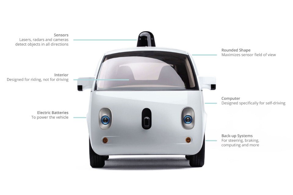 In apertura: Immagine da Easy Rider di Dennis Hopper, 1969. Qui sopra: Prototipo dell'automobile autonoma Waymo. The Design Museum, “California. Designing freedom”, Londra 2017