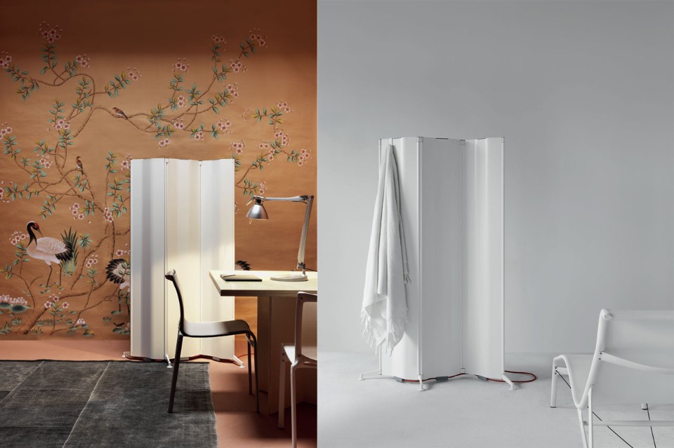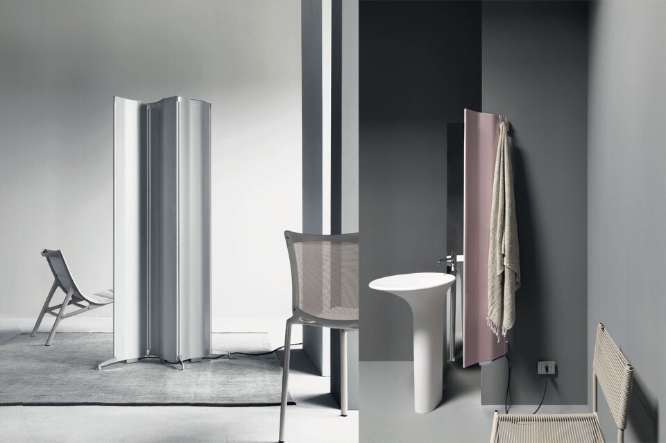 Origami è un elemento d’arredo sinuoso, snodato e flessibile, che permette di dar vita a configurazioni diverse a partire da un modulo curvilineo, che alterna parti cave al cuore scaldante. Sono tre le versioni adattabili a ciascun ambiente della casa e caratterizzate anche grazie agli accessori che li completano. Nella versione free-standing, piega dopo piega, i moduli semovibili consentono di delineare lo spazio come un vero e proprio separé. Il modello a parete è stato ideato con elemento singolo o doppio.