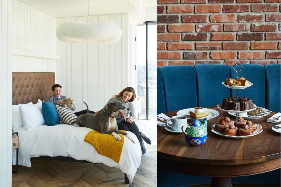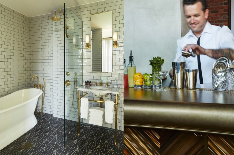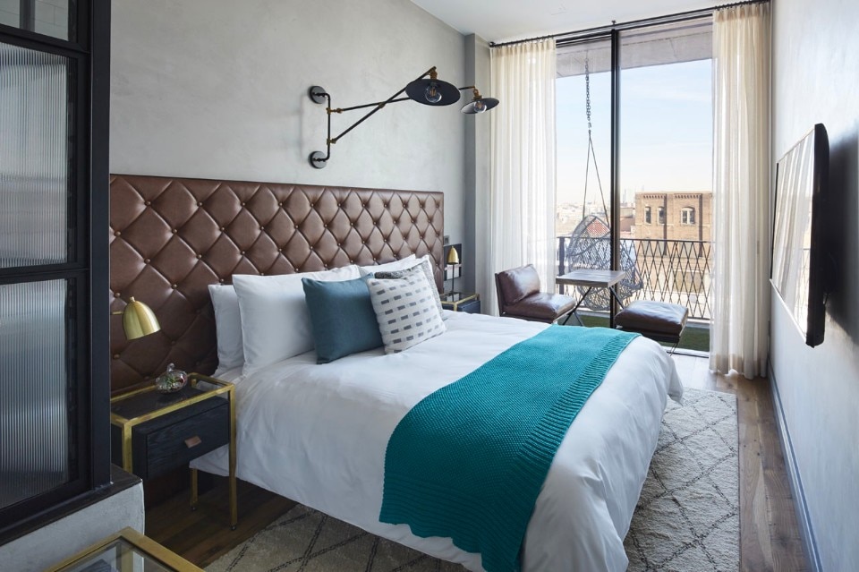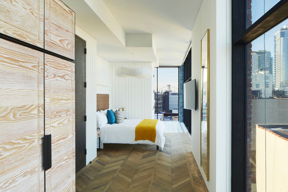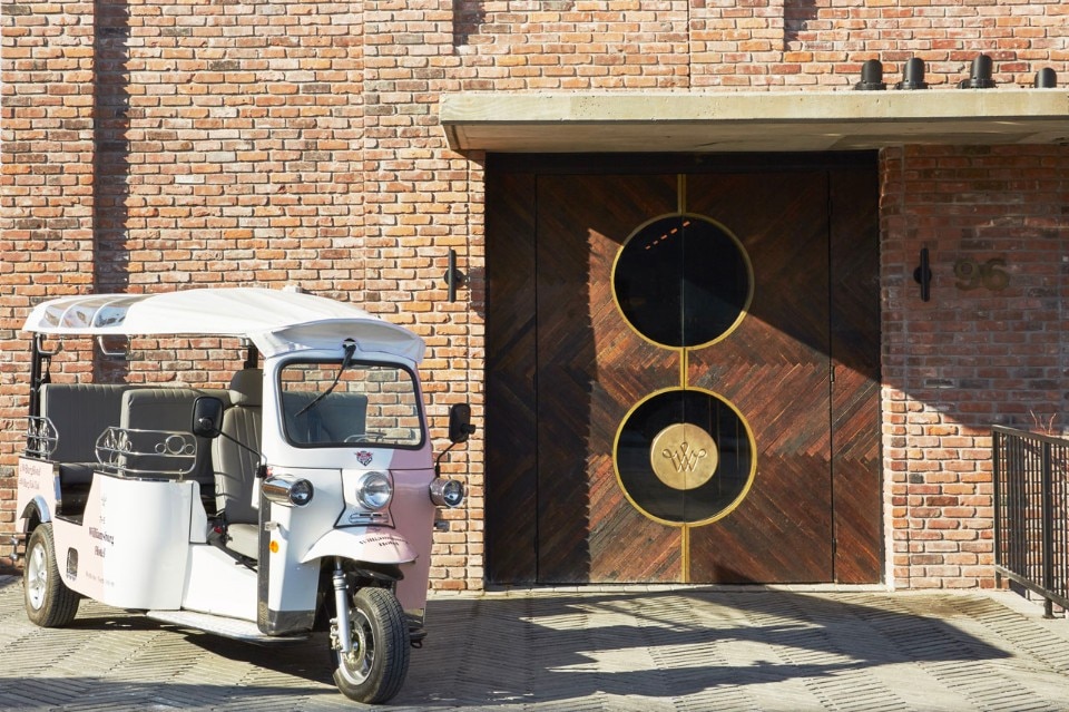 L’hotel è stato progettato come punto di riferimento serale con un ristorante, una piscina sul tetto, la prima sala da ballo del quartiere e tre bar differenti, tra cui uno in una torretta dell’acqua che è una replica in omaggio a quella storica in legno di un tempo. In armonia con il quartiere, The Williamsburg Hotel presenta una facciata industriale che nasconde interni colorati. Michaelis Boyd ha progettato uno schema della facciata costituito da mattoni, vetro e acciaio corten. Gli interni presentano soffitti a doppia altezza e finiture naturali.