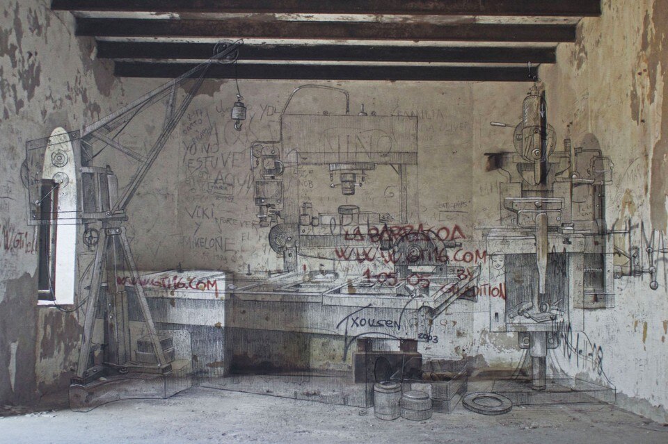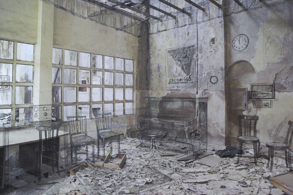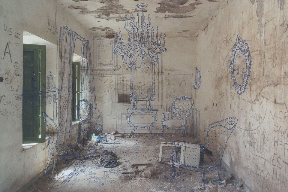 La sua ricerca parte da fotografie di luoghi abbandonati, percepiti come contenitori di un tempo sospeso. Su di essi poi l’artista disegna a china interni disabitati, in una sorta di ritratto di famiglia da cui sono stati elisi tutti i personaggi. In “Rewind” l’assenza di umanità lascia immersi in un silenzio denso e pieno di pathos, in cui gli oggetti sono gli unici testimoni delle persone che ci sono passate. Trasportando lo spettatore in una dimensione temporale indefinita, Hernández rigenera la vita attraverso l’incisione e il disegno, facendo emergere gli arredi reali o immaginari; una sovrapposizione di livelli in cui il passaggio del tempo appare inesorabilmente visibile.