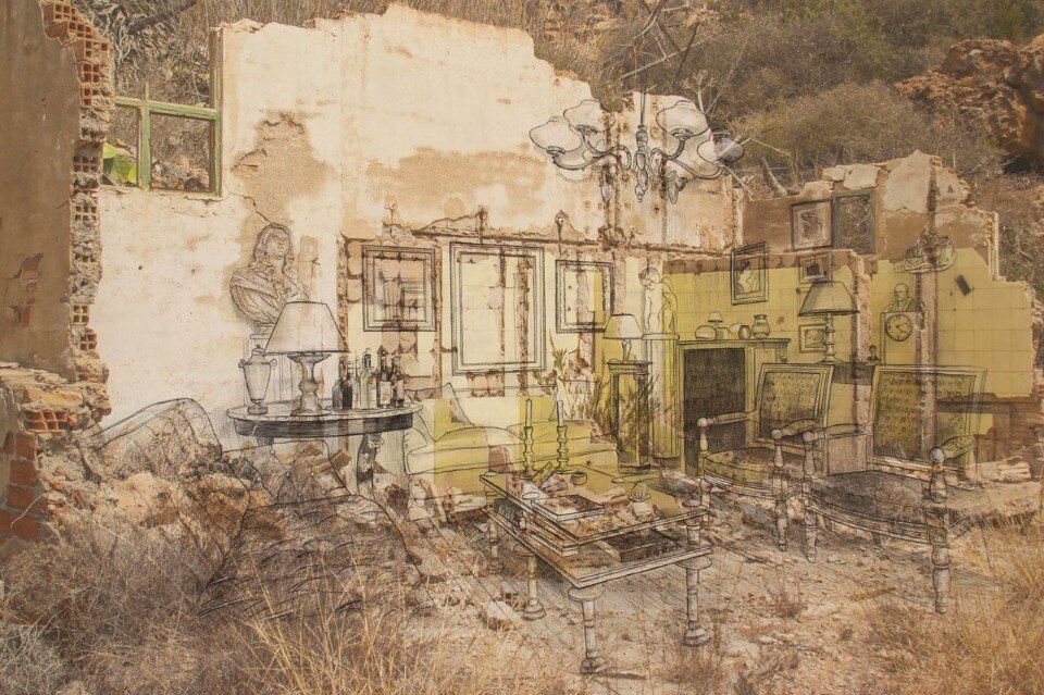 Mar Hernández, Ruina Habitada II, tecnica mista su fotografia, 100x70 cm, 2017 (dettaglio)