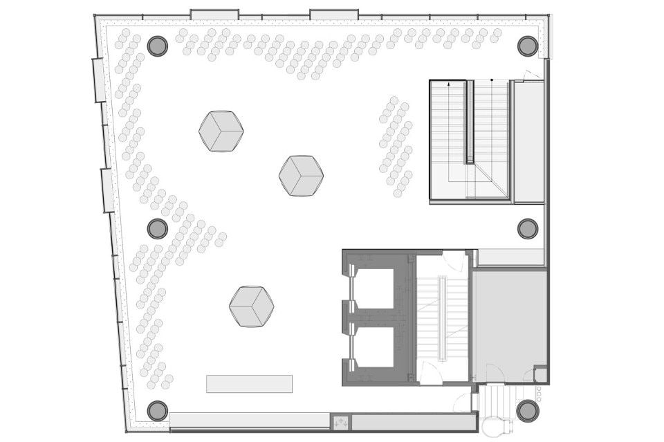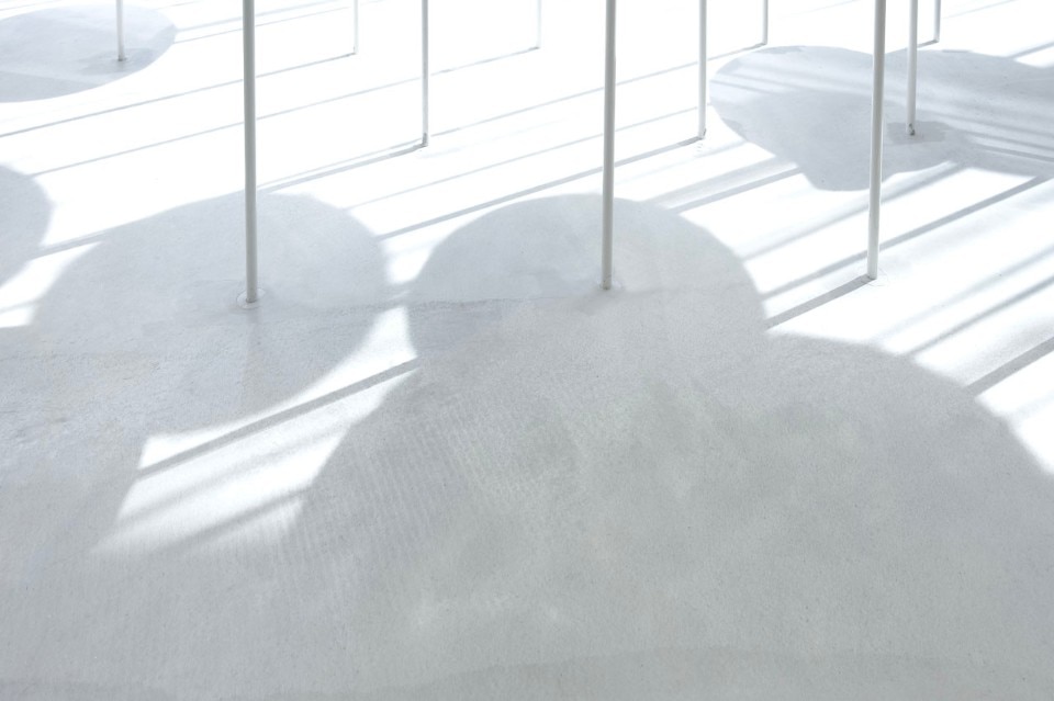 Tokujin Yoshioka, Hills Avenue flagship store, l'ombra sul pavimento dei sostegni a disco, 2017