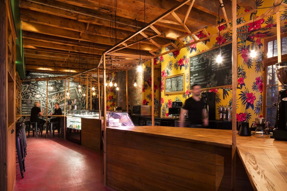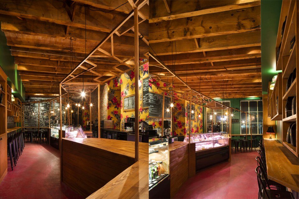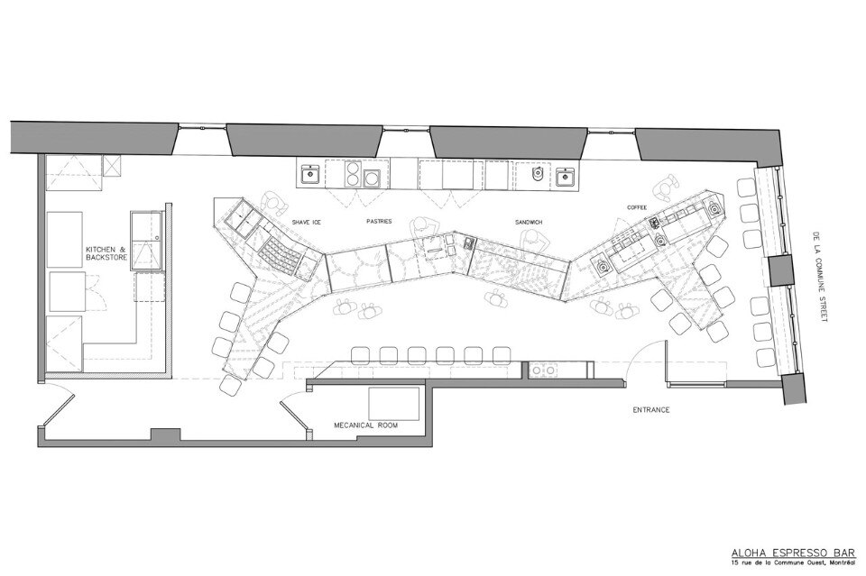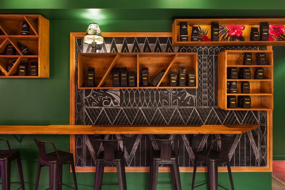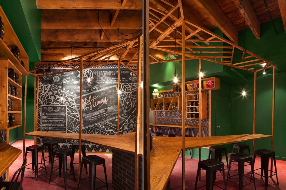 Situato in un vecchio magazzino, il progetto richiama la storia delle Hawaii e lo spirito dell’aloha attraverso una struttura su misura che, tra le righe, parla di topografia, di geologia e dell’antropologia dell’arcipelago. Le travi di legno del soffitto e il pavimento in cemento colorato sono quelli originali, mentre i mobili di legno e lampade sono tutti realizzati su misura. Le decorazioni murali fanno tutte riferimento alla cultura dell’arcipelago, trasmettendo un’atmosfera calda e accogliente.